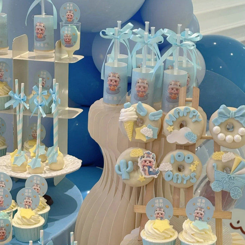 蓝色蛇宝宝男孩女孩周岁满月百天蛋糕装饰甜品台摆件场景布置插件