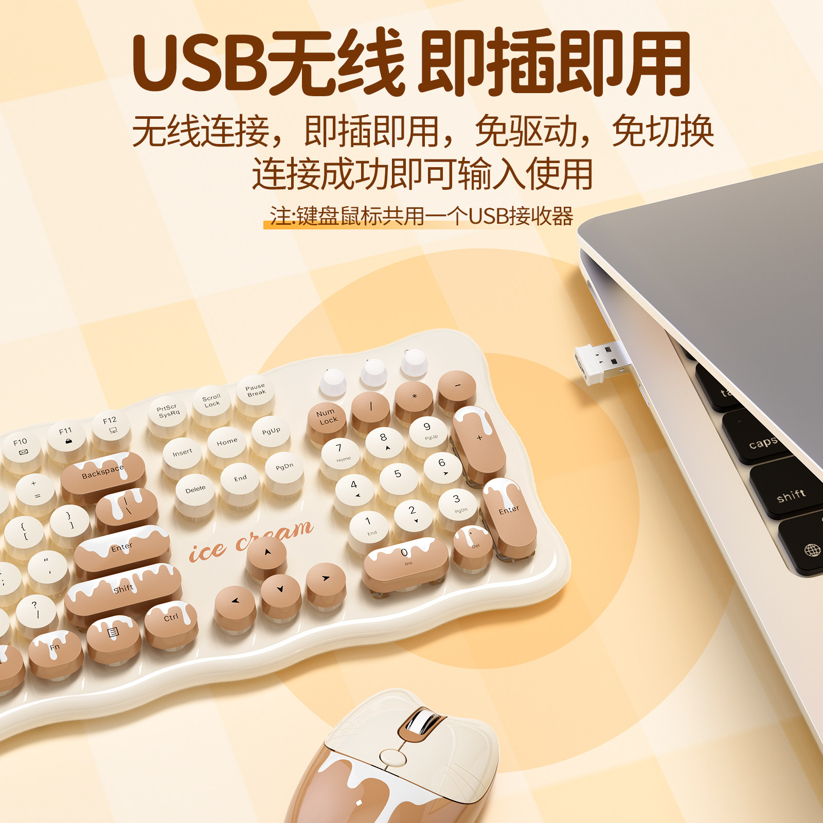mofii ice cream冰淇淋键盘无线键盘鼠标套装女生办公笔记本电脑