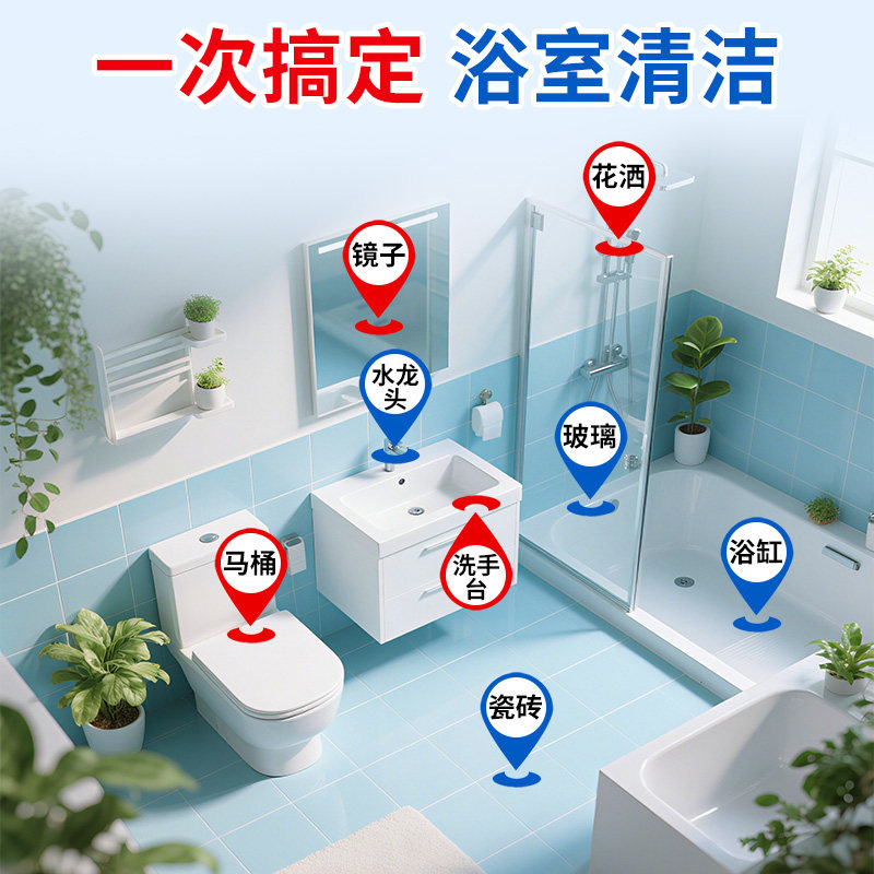浴室水垢清洁剂浴室玻璃水龙头马桶除水垢厕所淋浴房强力去污神器