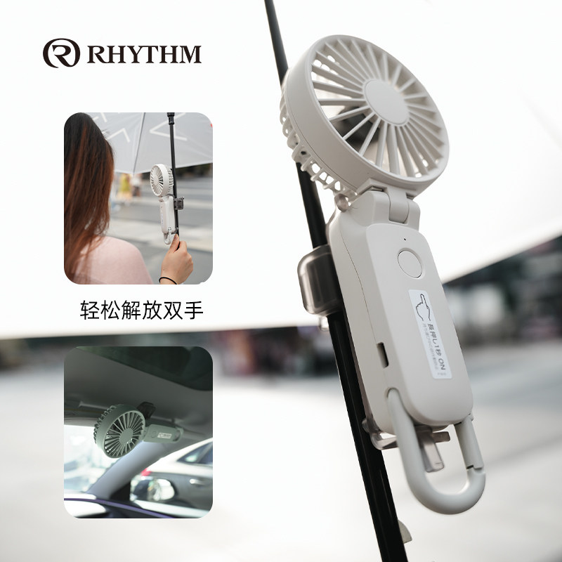 RHYTHM丽声日本品牌超静音手持风扇办公室桌面床上便携式USB充电超长续航挂脖迷你风扇2025年新款降温神器