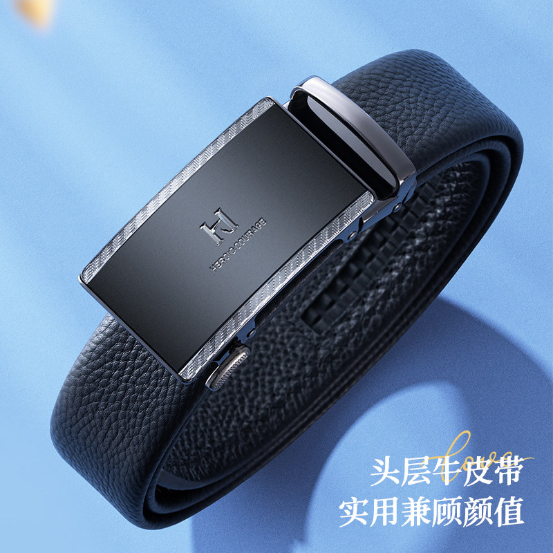 HLA/海澜之家皮带男士头层牛皮自动扣高端送爸爸送老公礼物裤腰带