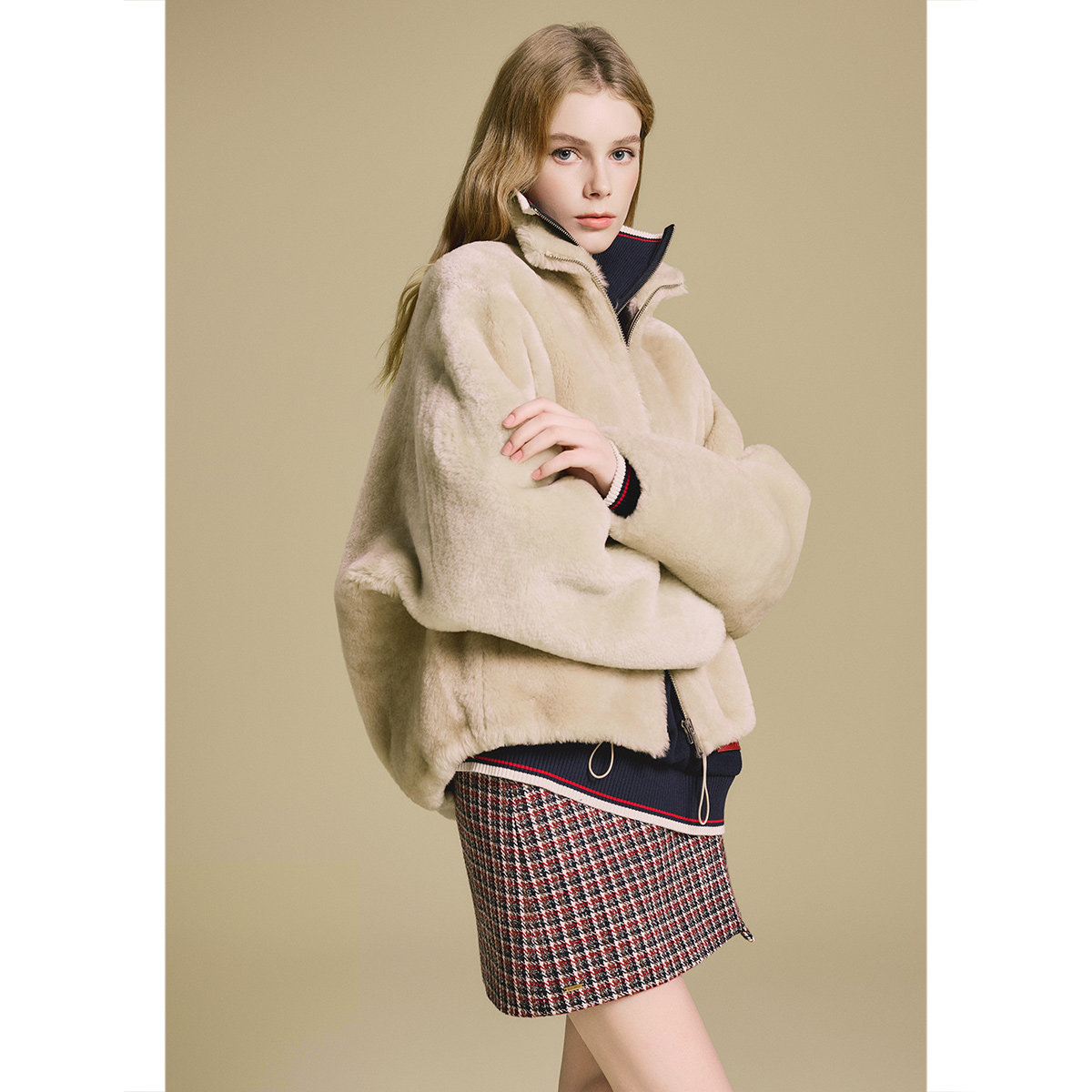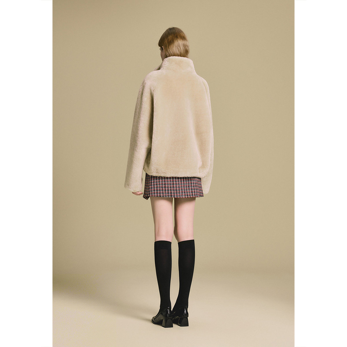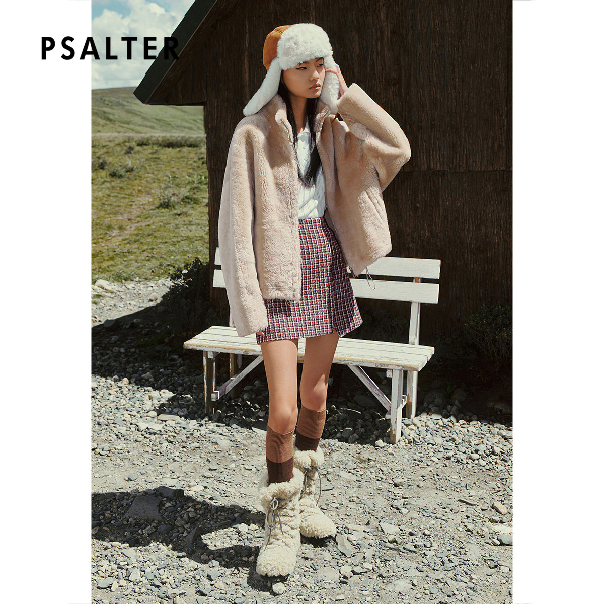 PSALTER诗篇立领宽松皮毛一体短款皮草外套2025冬季新款