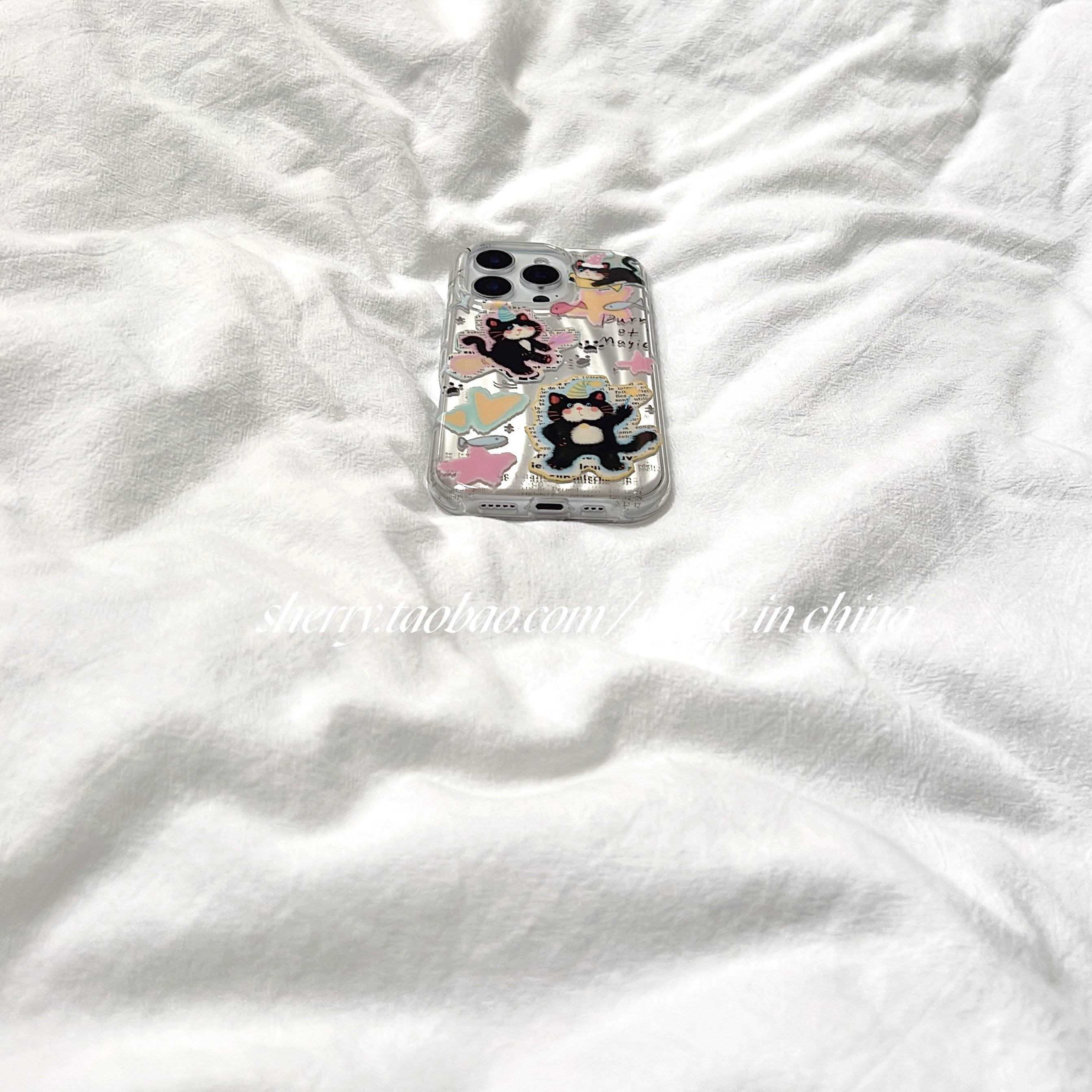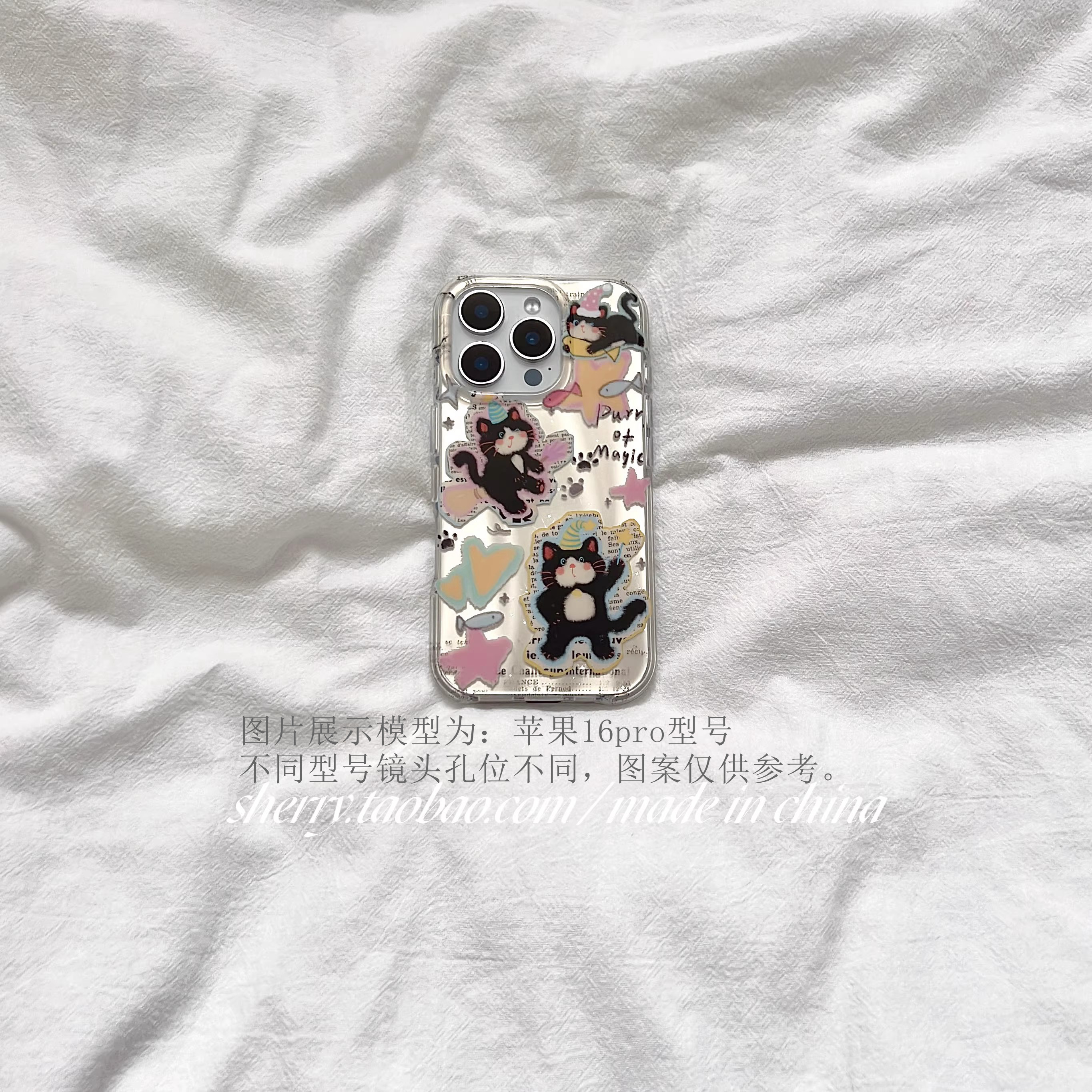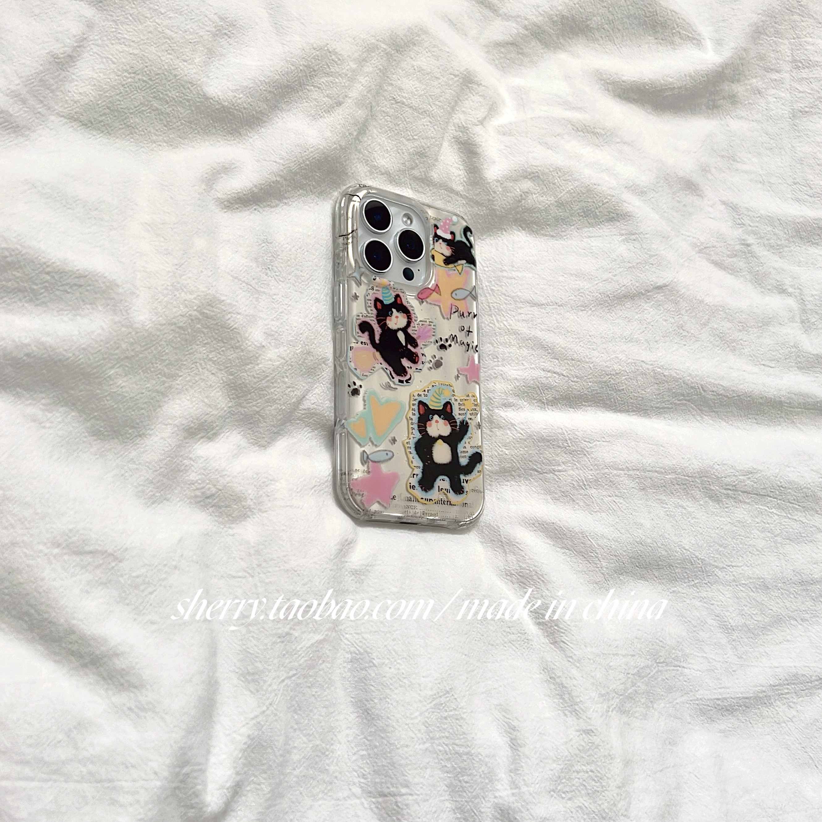 SHERRY*ins风涂鸦星星报纸小黑猫可爱适用于苹果17ProMax手机壳iPhone16Pro小众少女心15简约14清新13卡通夏