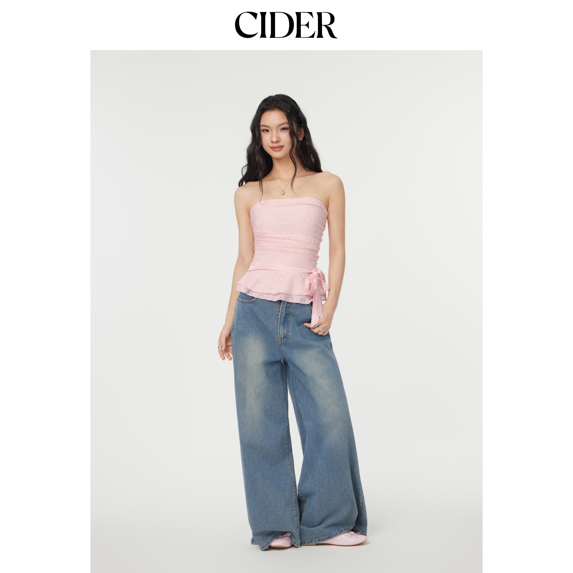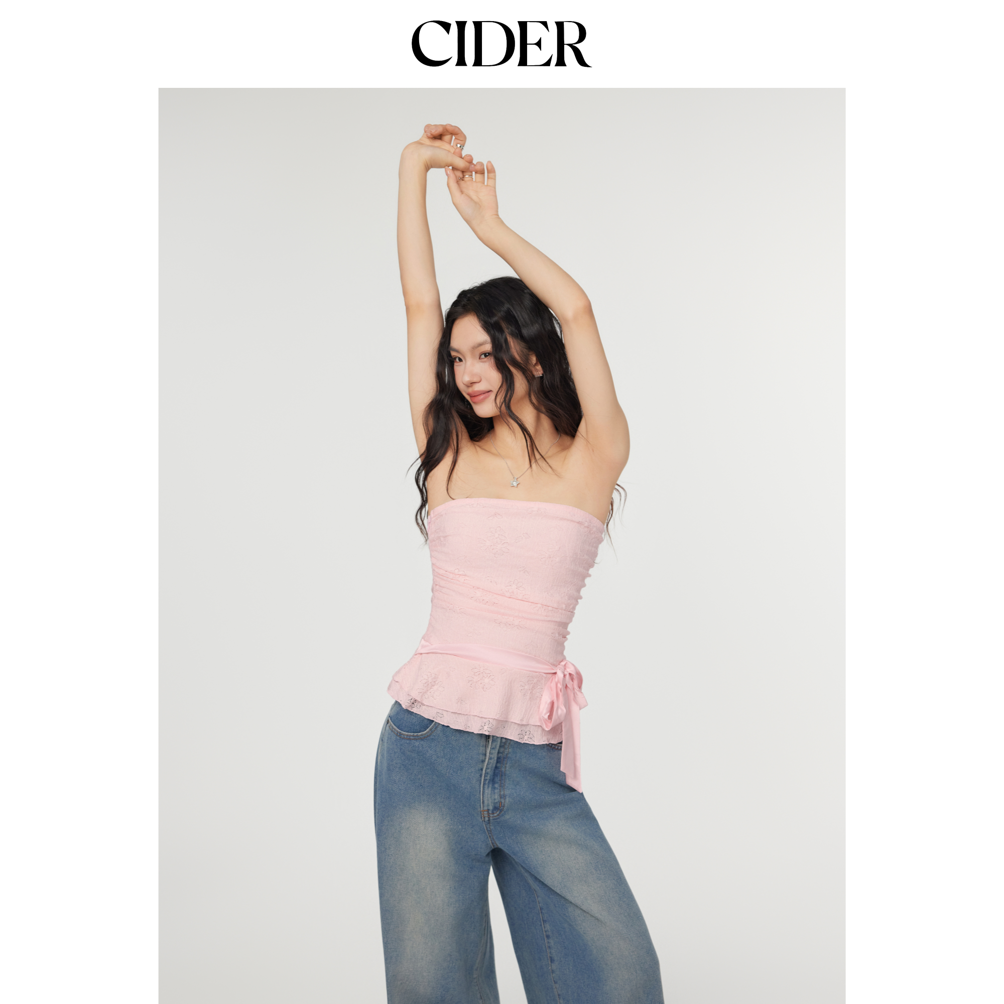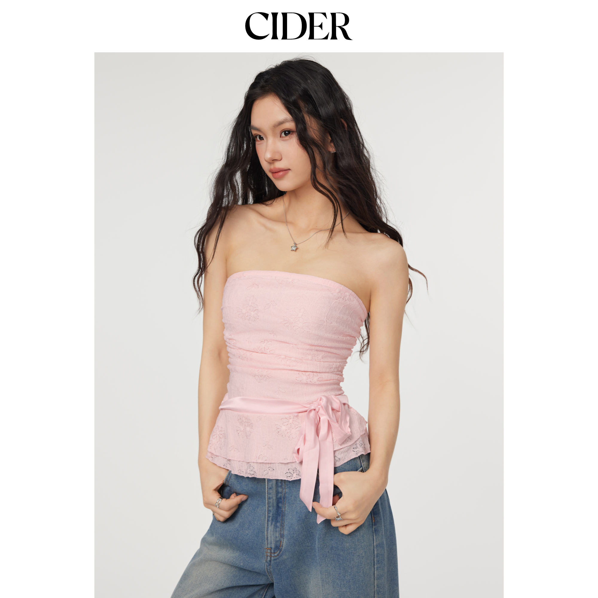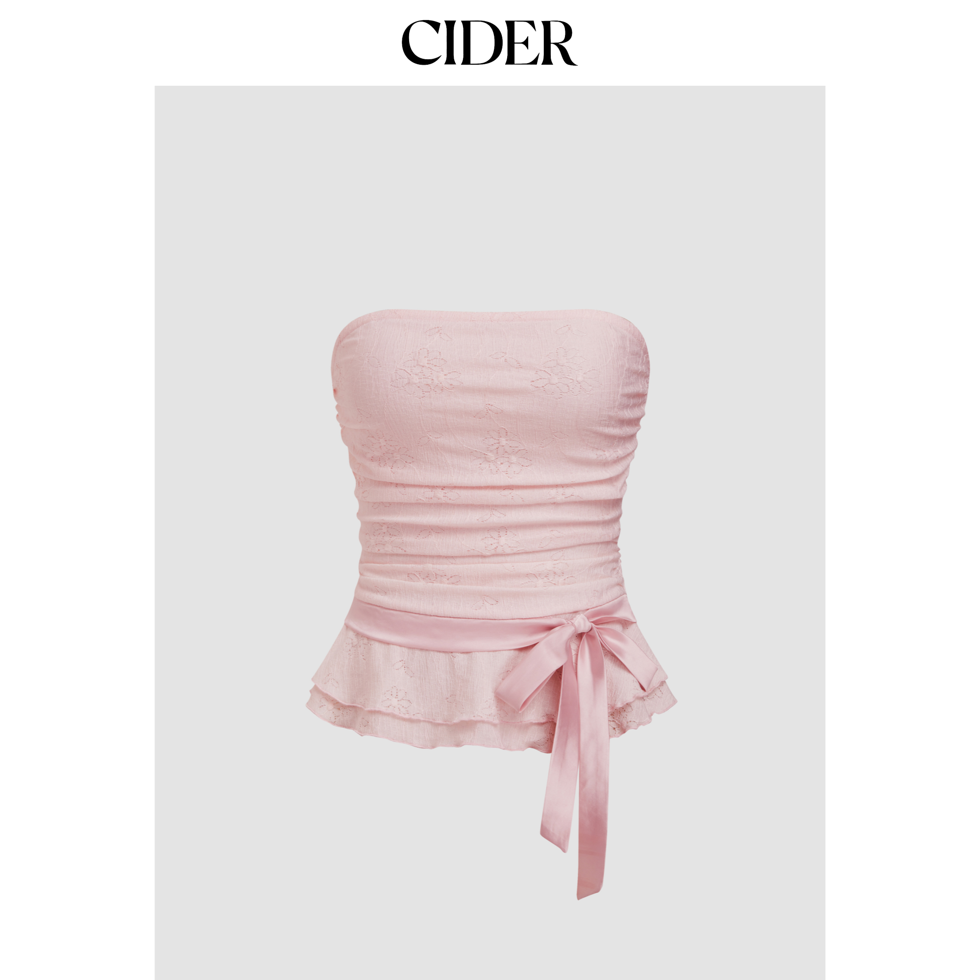CIDER蕾丝抹胸背心荷叶边蝴蝶结抽褶抹胸上衣114510780