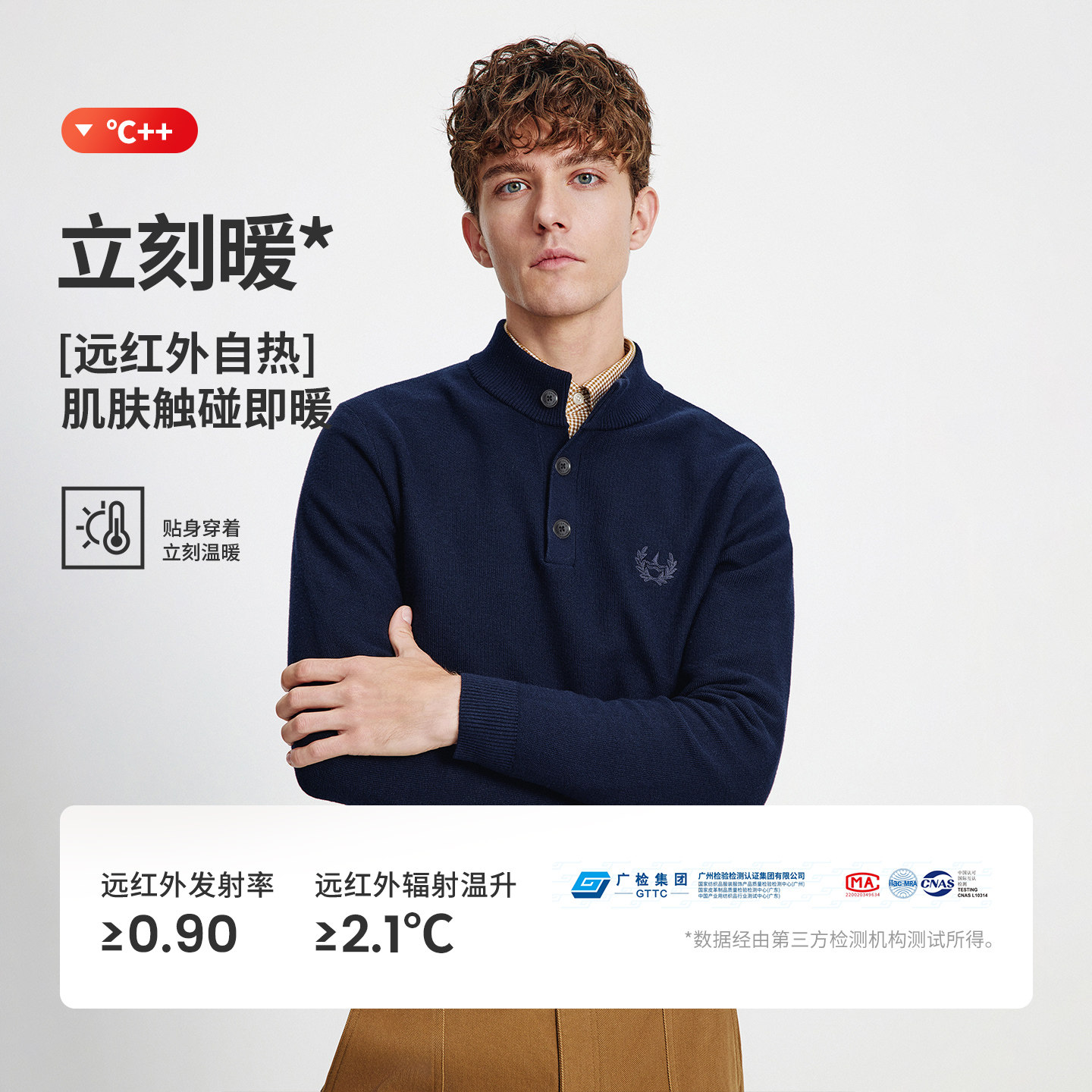 森马毛衫男冬季含羊绒针织衫发热抑菌2025新款基础圆领黑色打底衫