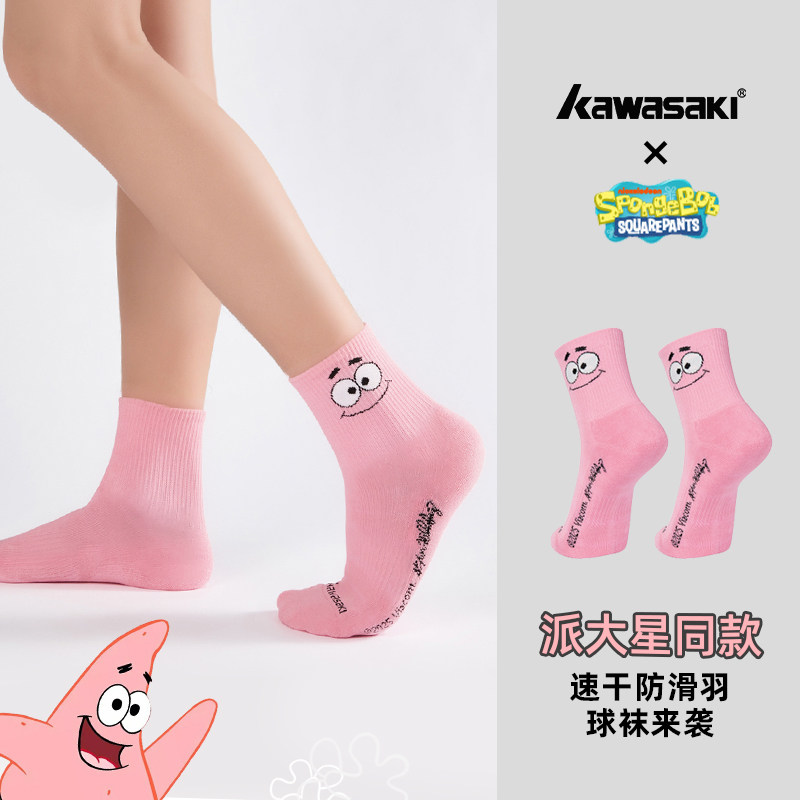 川崎海绵宝宝联名运动袜子羽毛球中袜学生跑步健身卡通透气可爱