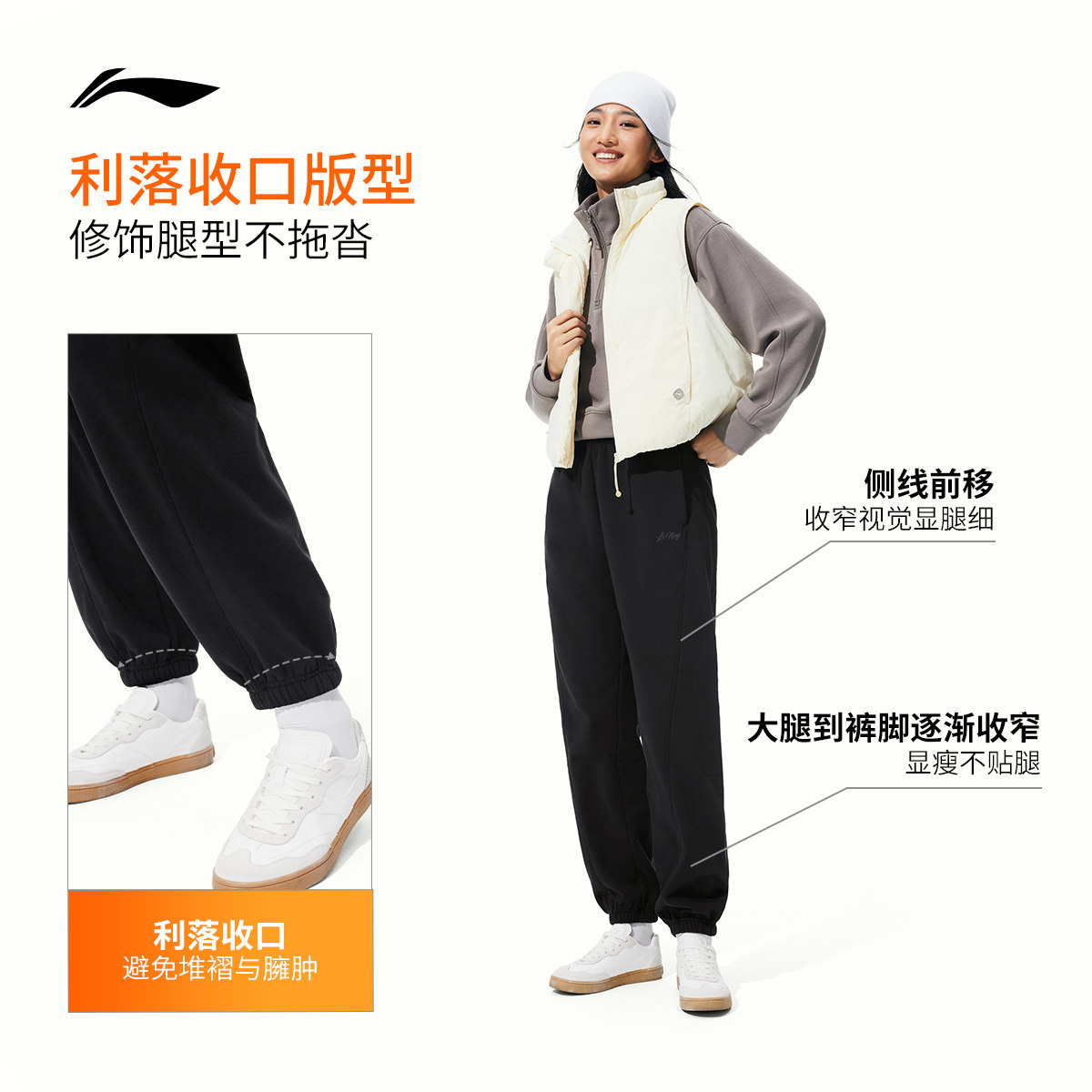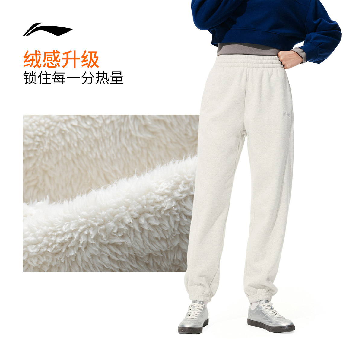李宁热力裤丨卫裤2025新款裤子宽松秋冬季加绒保暖束脚运动裤女款