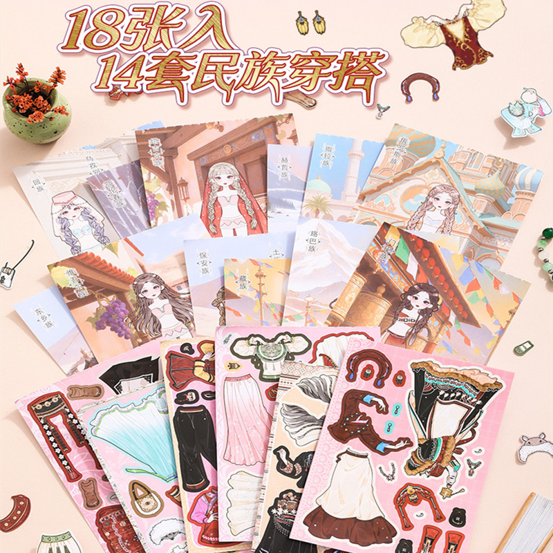 (解锁14套民族服装)益智启蒙免剪裁少数民族风主题不重复可爱人物少女换装游戏贴纸diy56789岁女孩生日礼物