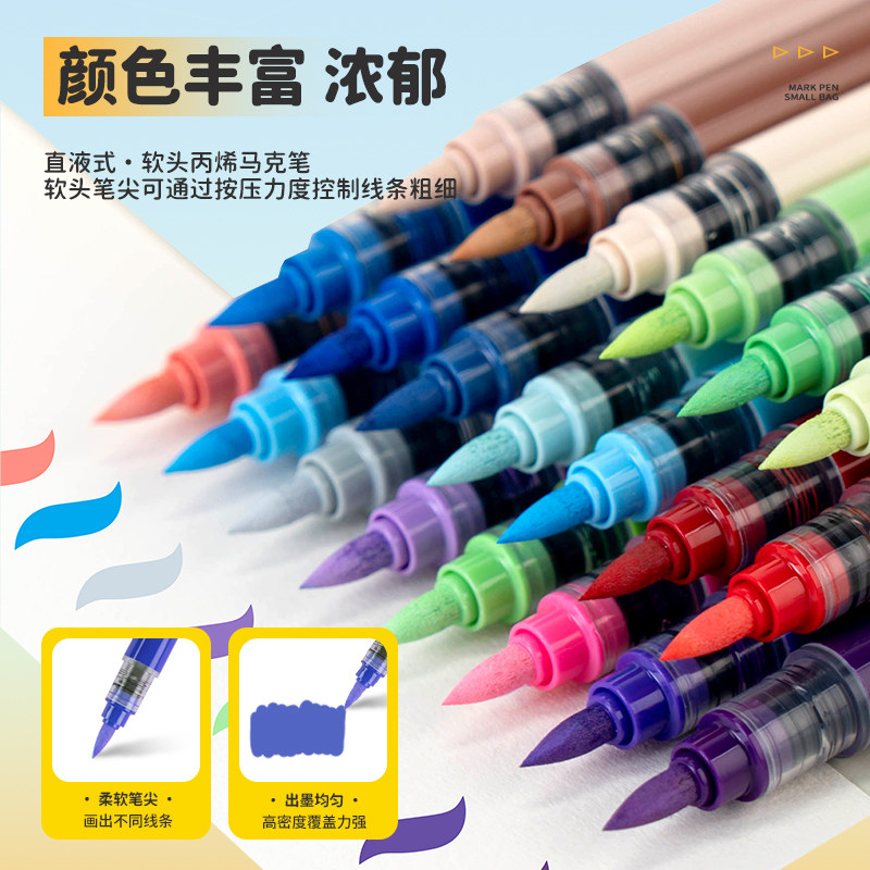 直液式丙烯马克笔软头小学生美术专用水彩笔儿童颜色笔可水洗24色画笔不透色48绘画可叠色彩色笔36水性丙烯笔