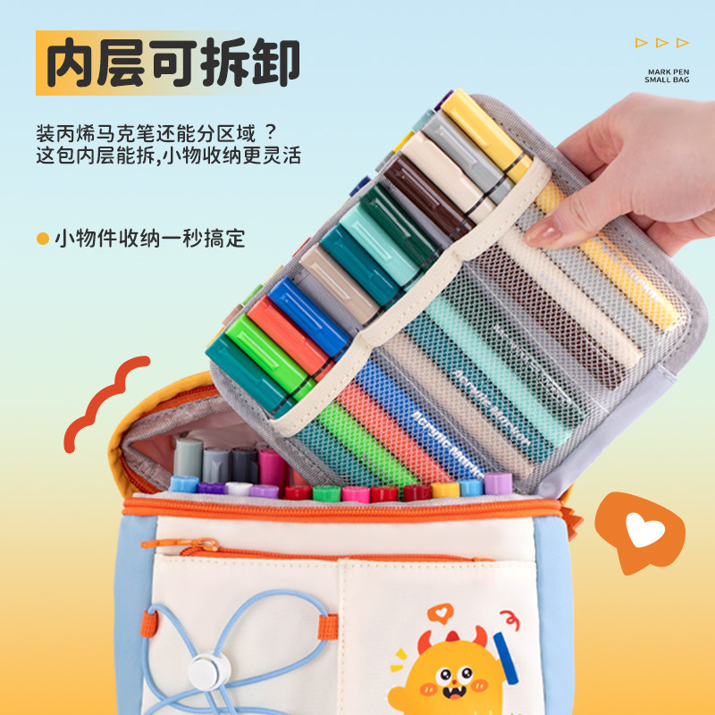 一木林丙烯马克笔分类笔袋儿童软头马克笔专用多色收纳包48色24色水彩笔收纳袋文具袋手提便携大容量防水耐用