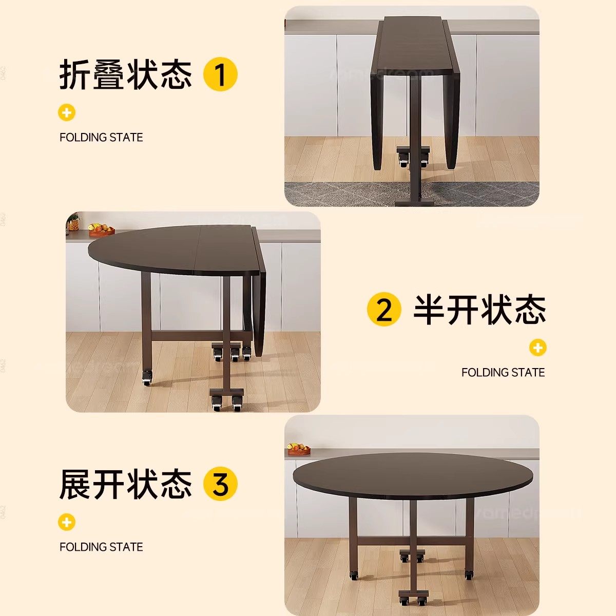 三梦折叠餐桌家用租房小户型可移动便携式圆桌带转盘10人吃饭桌子