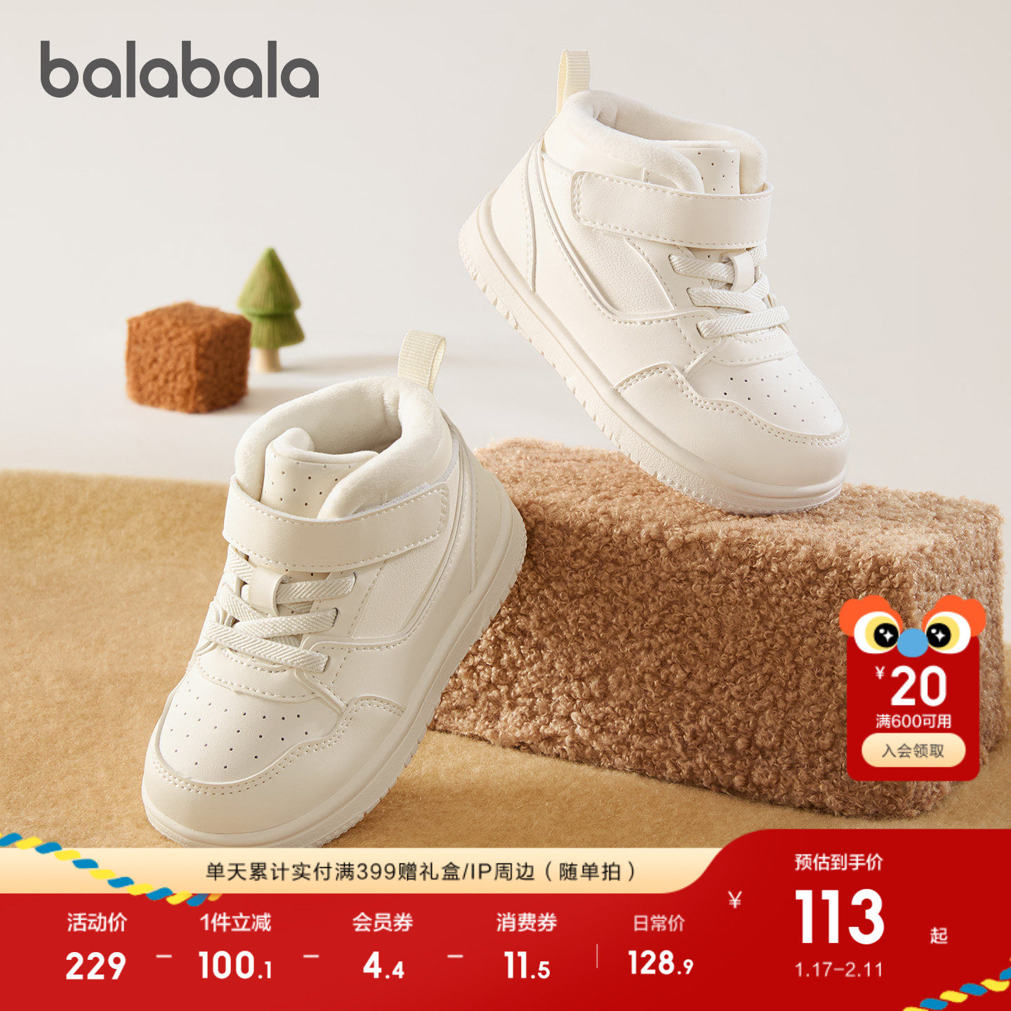 巴拉巴拉童鞋儿童板鞋男女童学步鞋2025新款秋冬高帮鞋子加绒防滑