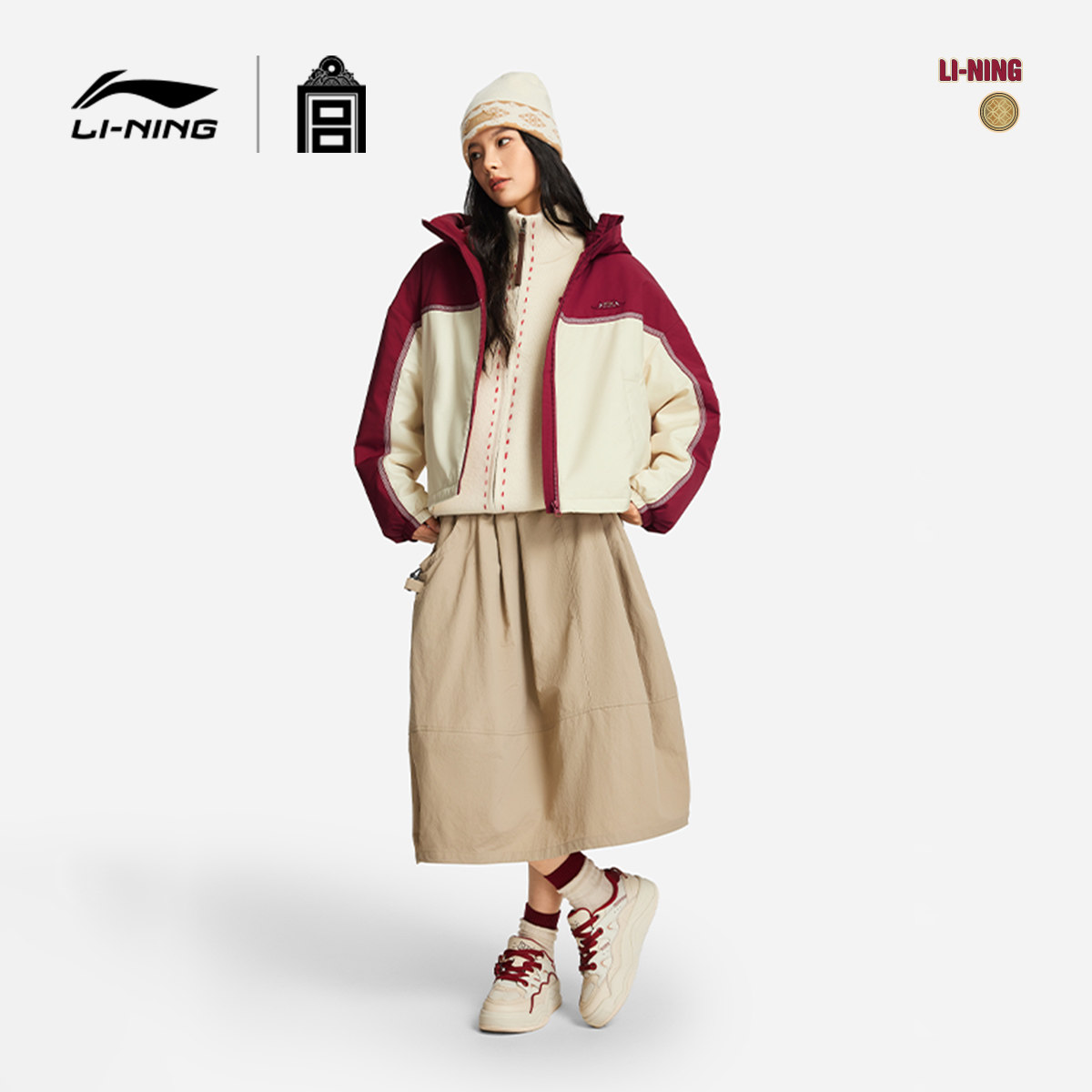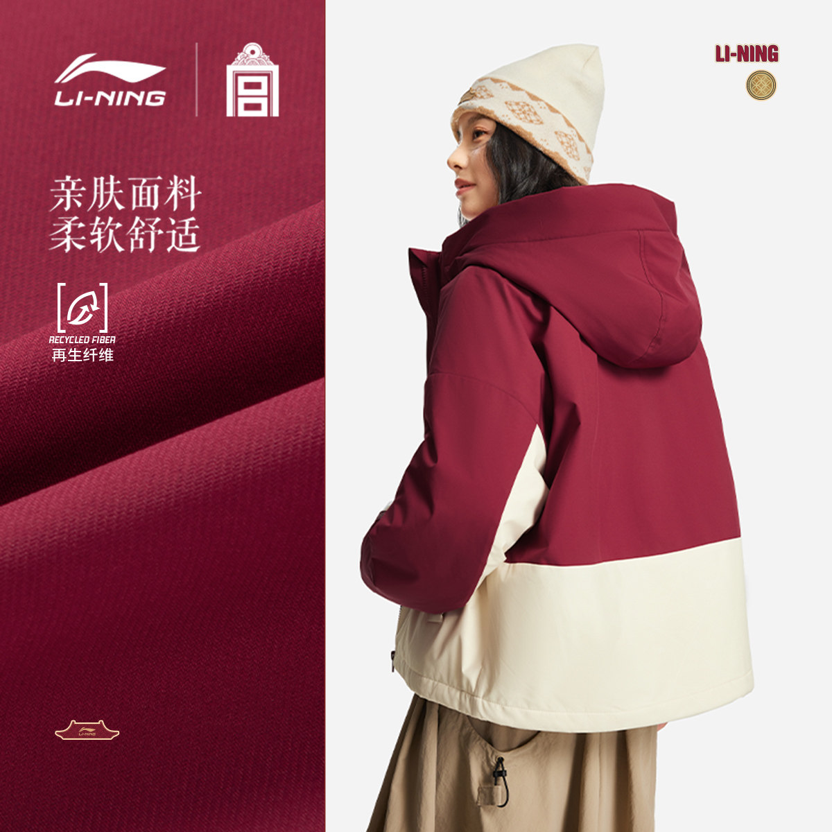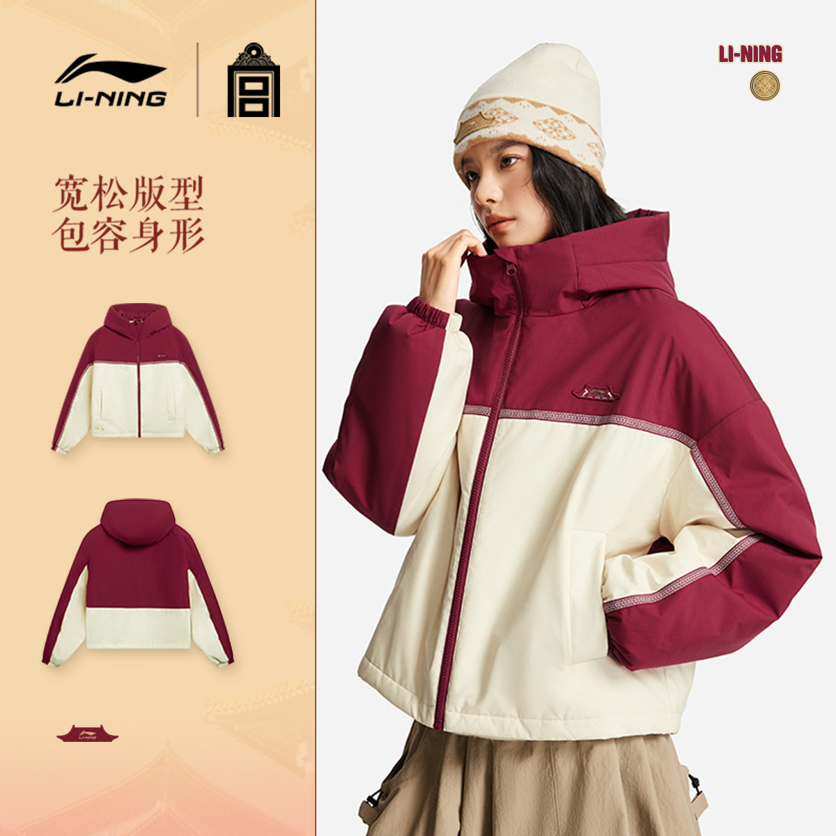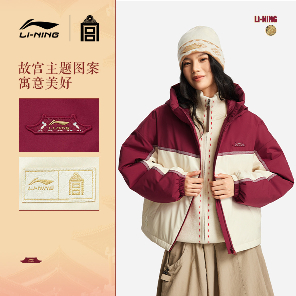 李宁中国文化系列故宫联名棉服女春季2026新款新年红色马年运动服