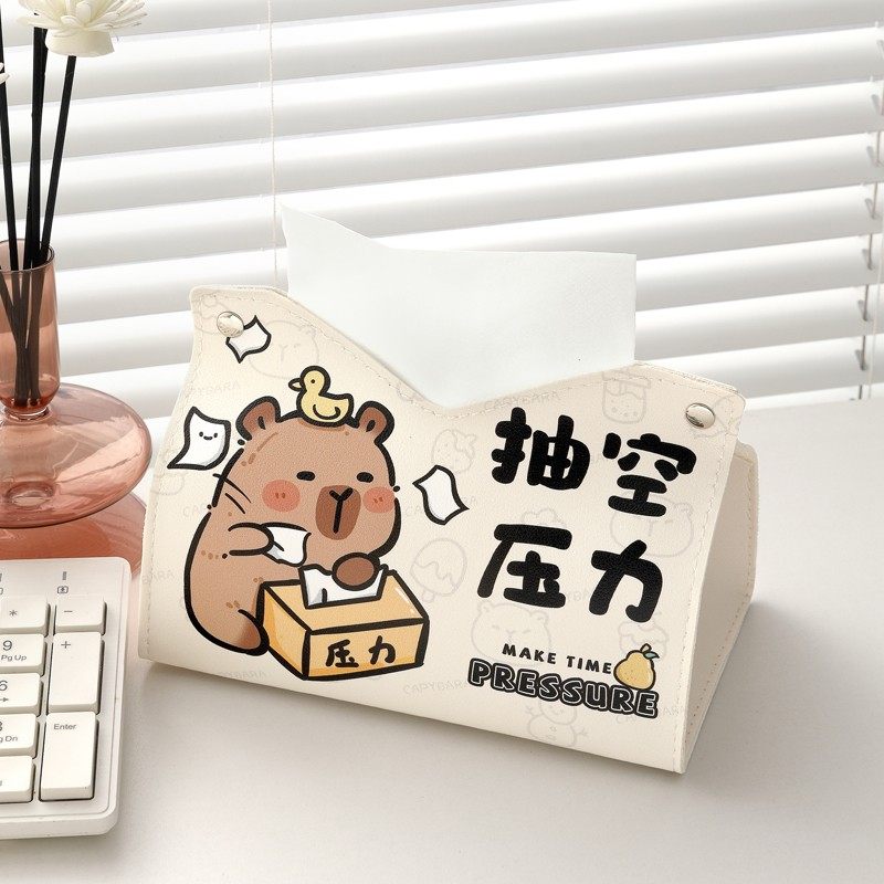 卡通可爱卡皮巴拉抽纸纸巾盒创意客厅茶几餐巾盒卧室用桌面收纳盒
