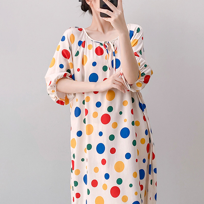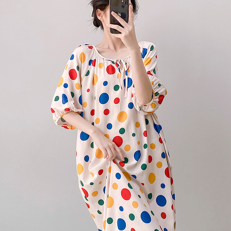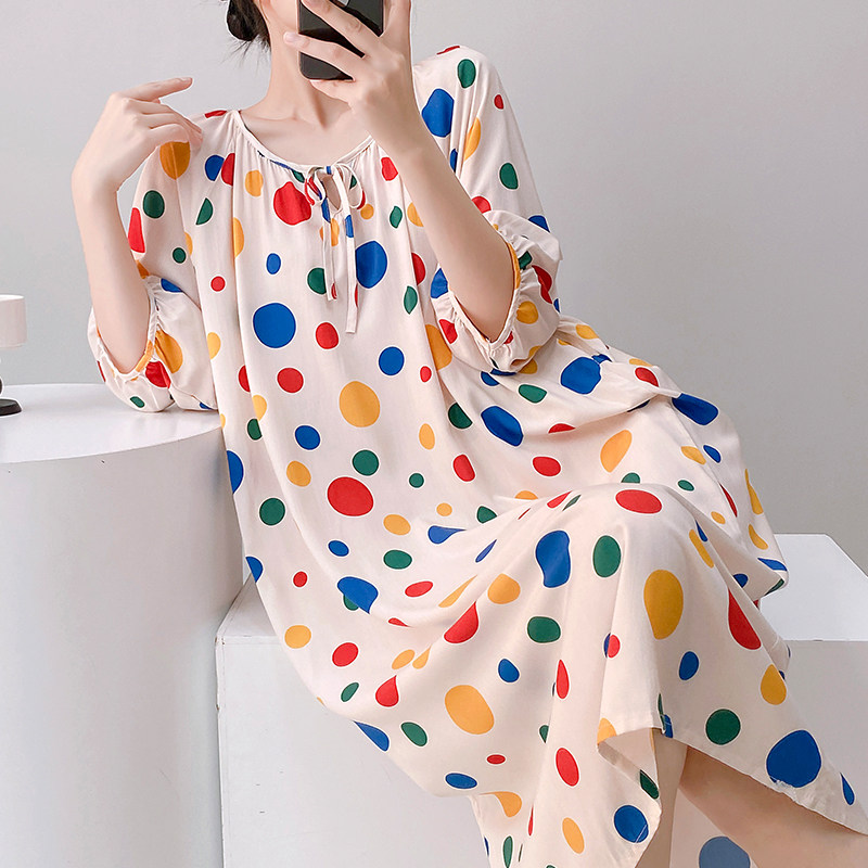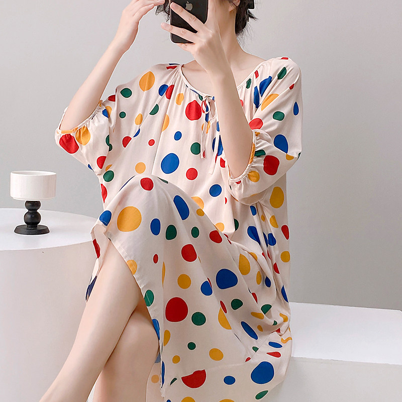韩版加长款棉绸睡裙女士短袖加大码睡衣夏季人造棉宽松舒适居家服