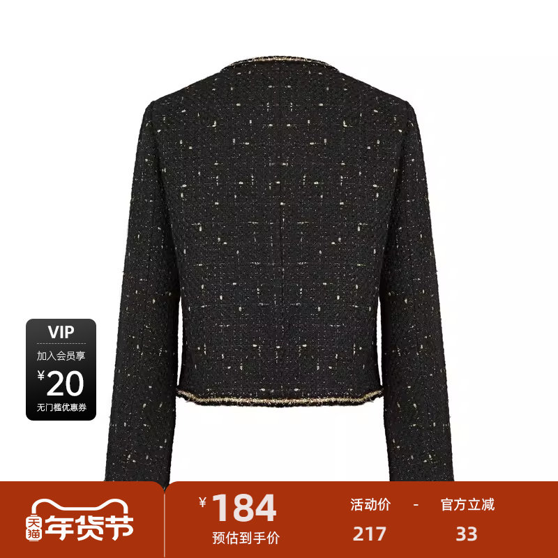 【秒杀】S·DEER圣迪奥秋小香风撞色肌理毛呢短款外套S233Z2241
