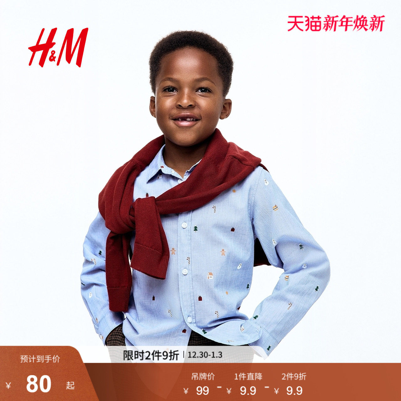 HM童装儿童男童衬衫2025冬季新款新年印花棉质内搭衬衣1301973