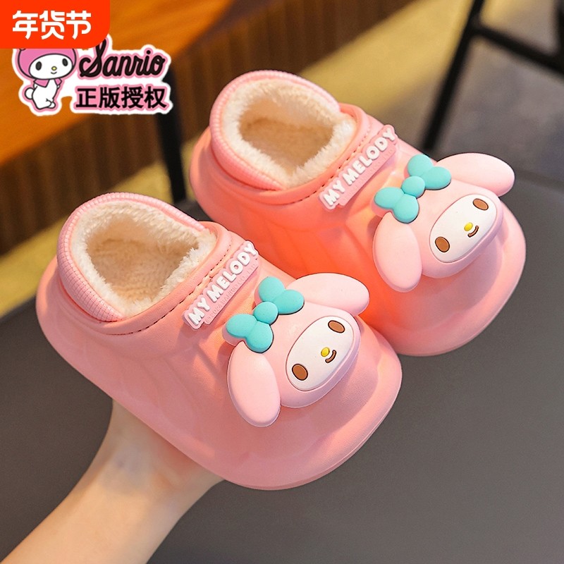 三丽鸥儿童棉拖鞋男女童保暖加绒EVA防水库洛米宝宝棉拖冬季防滑