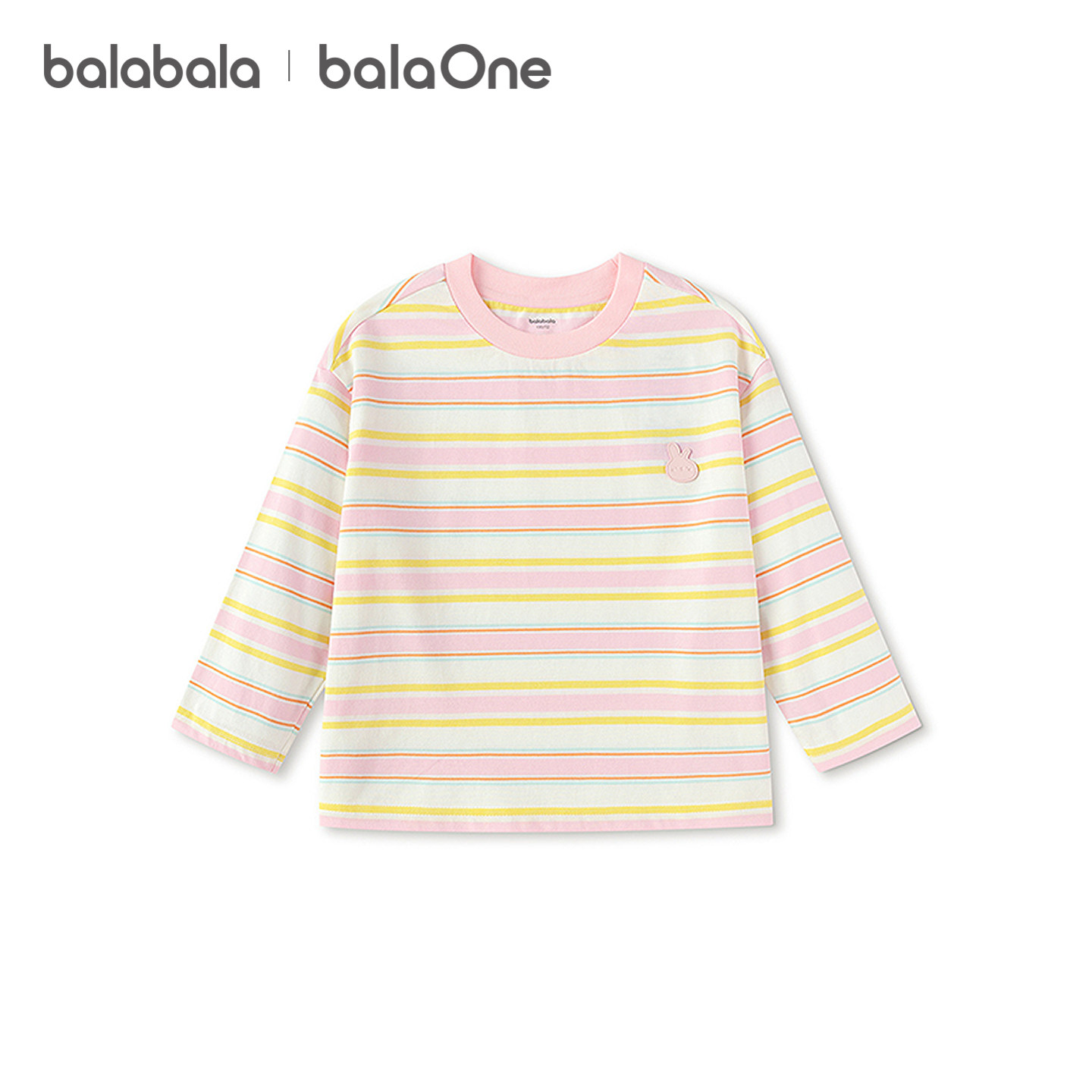 巴拉巴拉童装儿童长袖t恤男女童2026新款春装宝宝纯棉条纹上衣萌