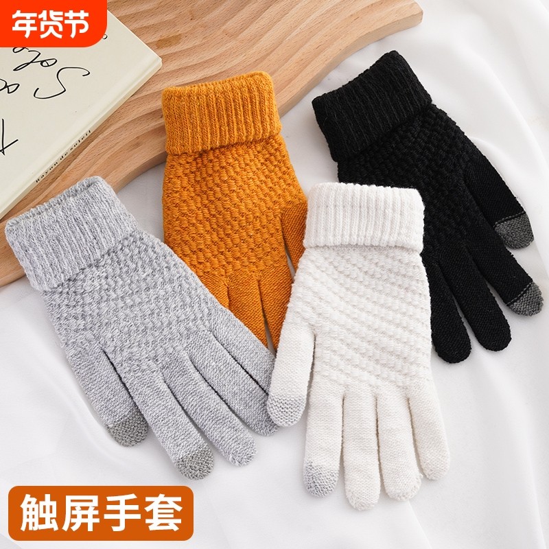 可触屏棉手套男士冬季保暖加绒加厚毛线针织骑行男女同款防寒手套