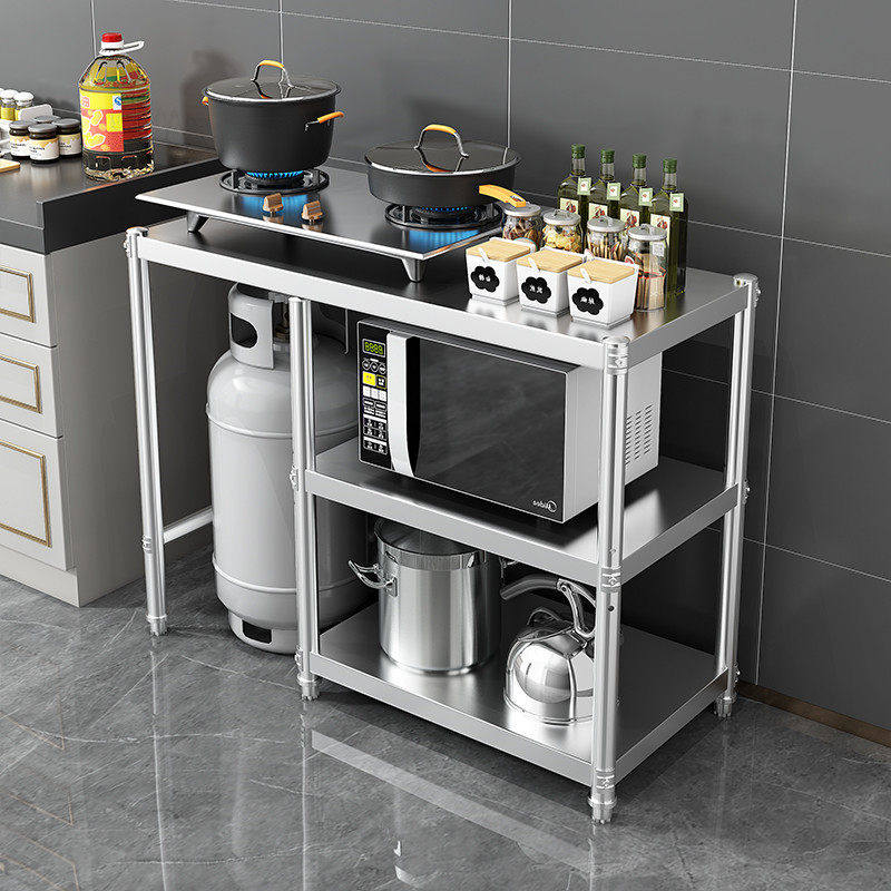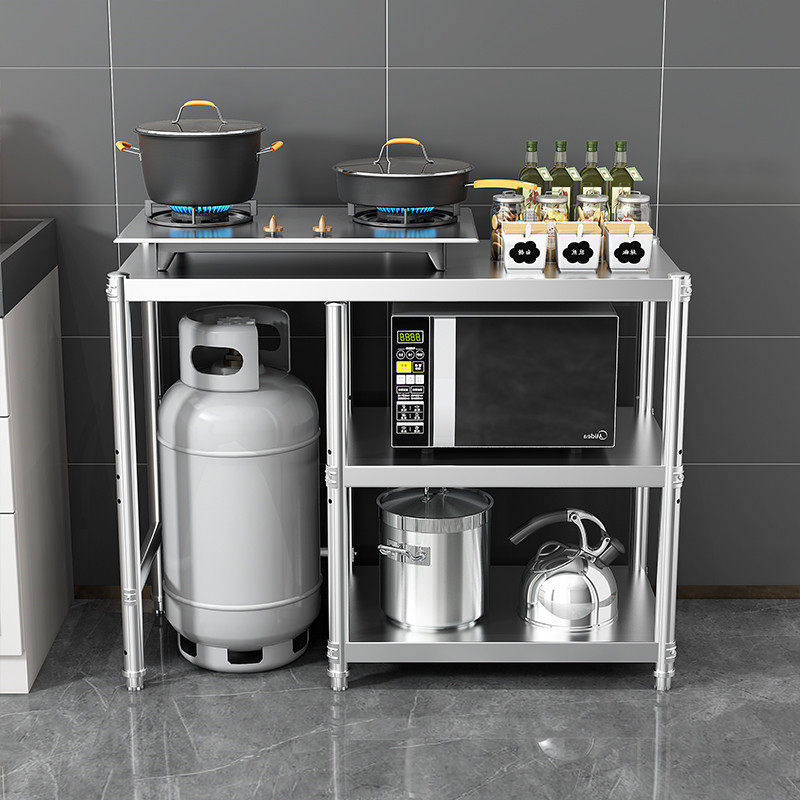 加厚不锈钢中式三层置物架 落地式煤气罐架 201不锈钢储物架