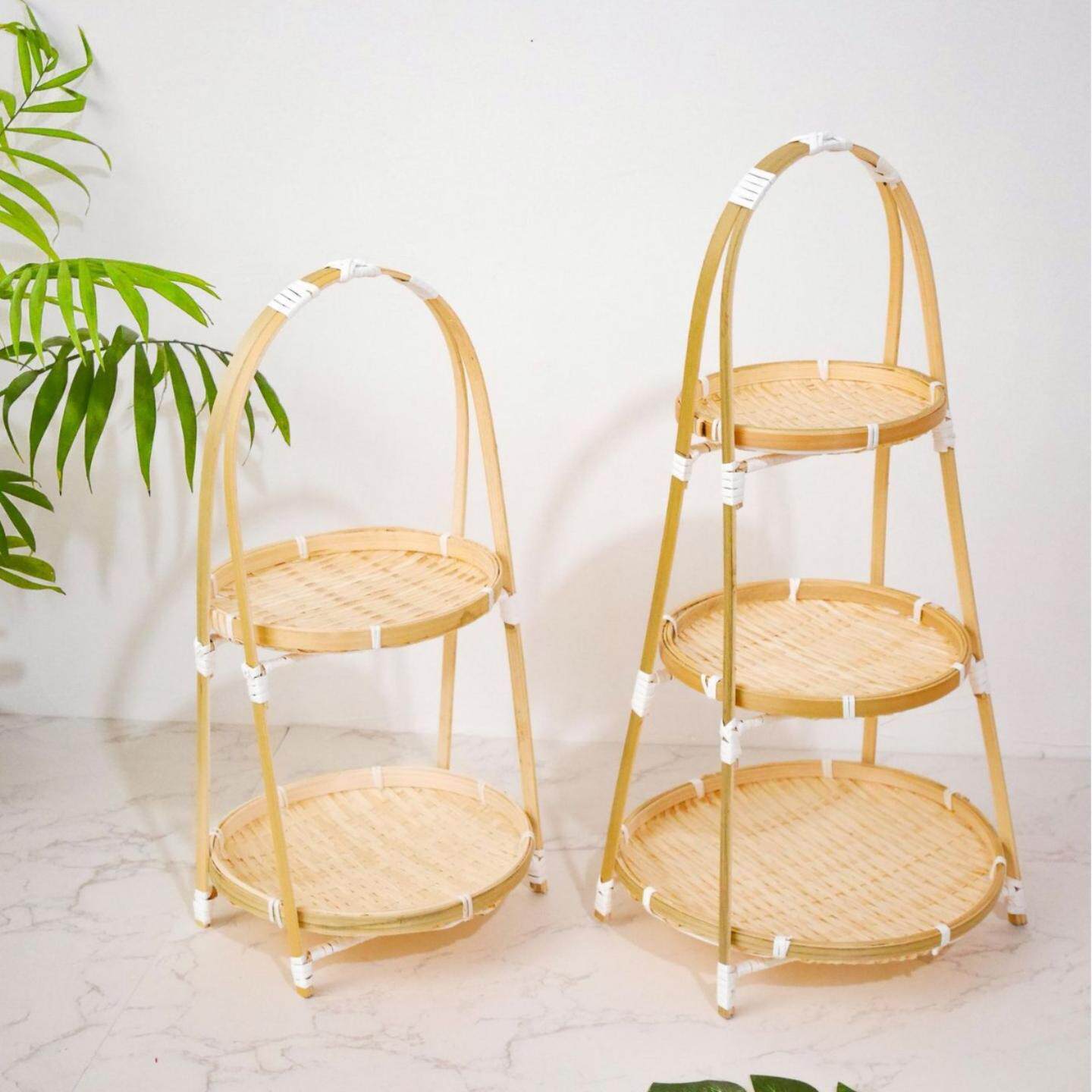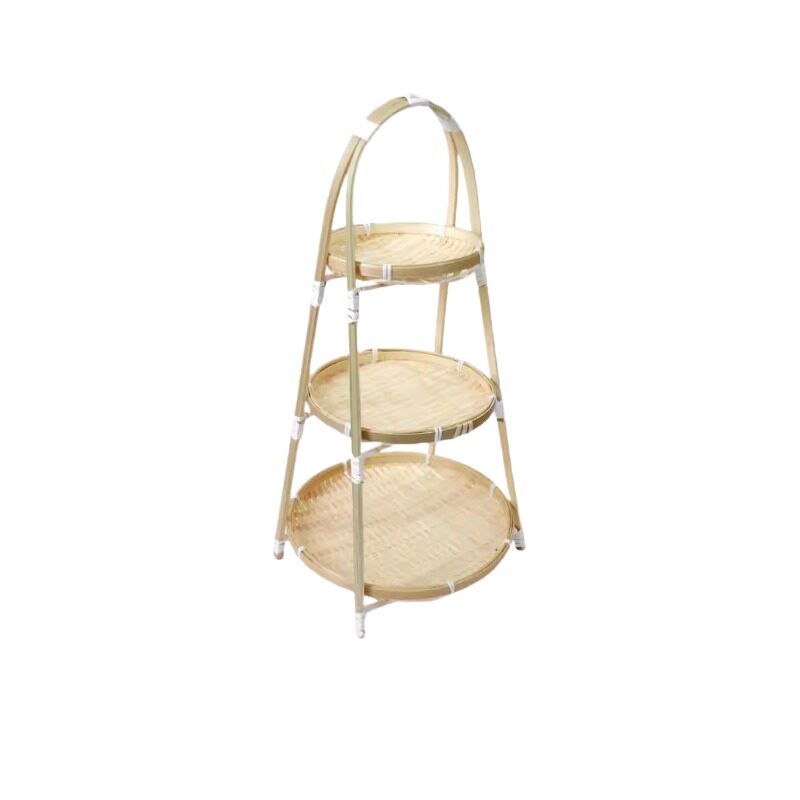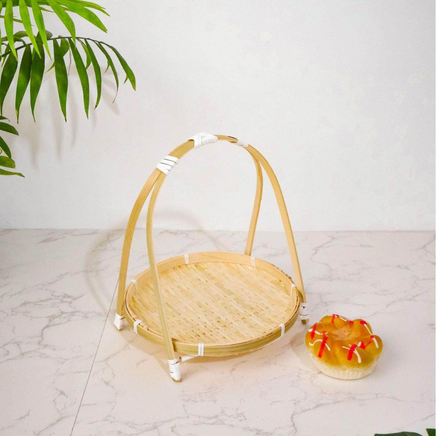 竹编小提篮圆形提手茶点水果篮子糕点托盘创意小竹篮多层竹编篮