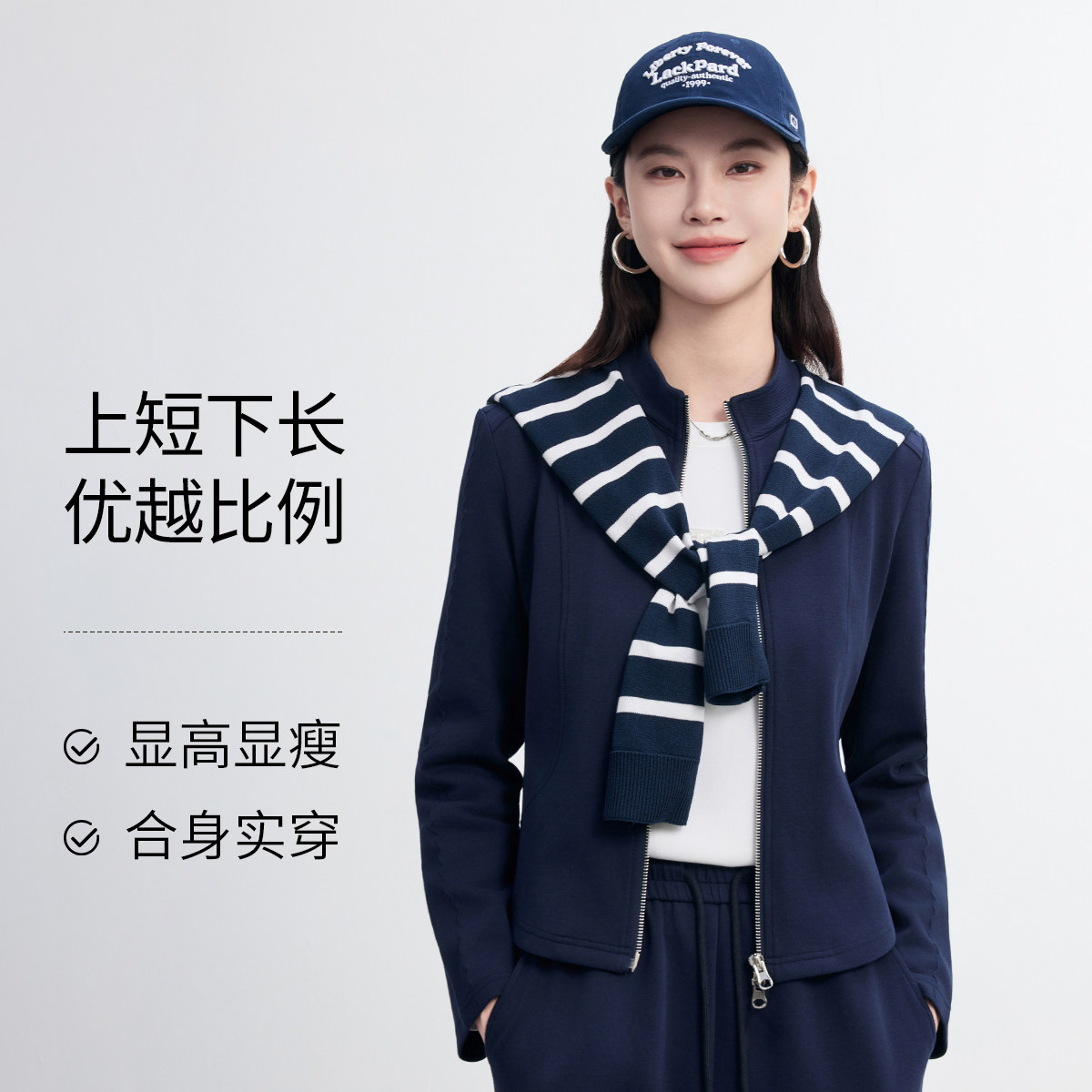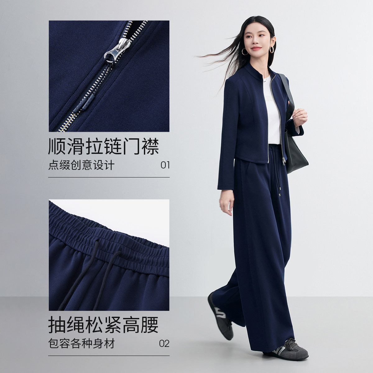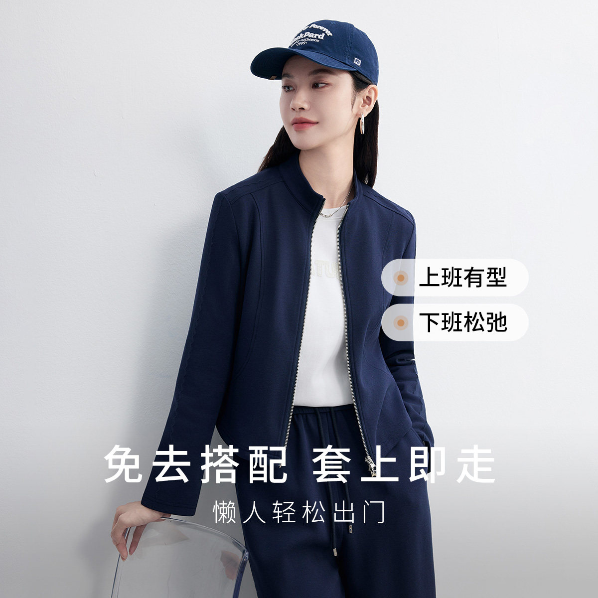 FINITY菲妮迪时尚套装2026春新款简约藏青色休闲洋气通勤两件套女