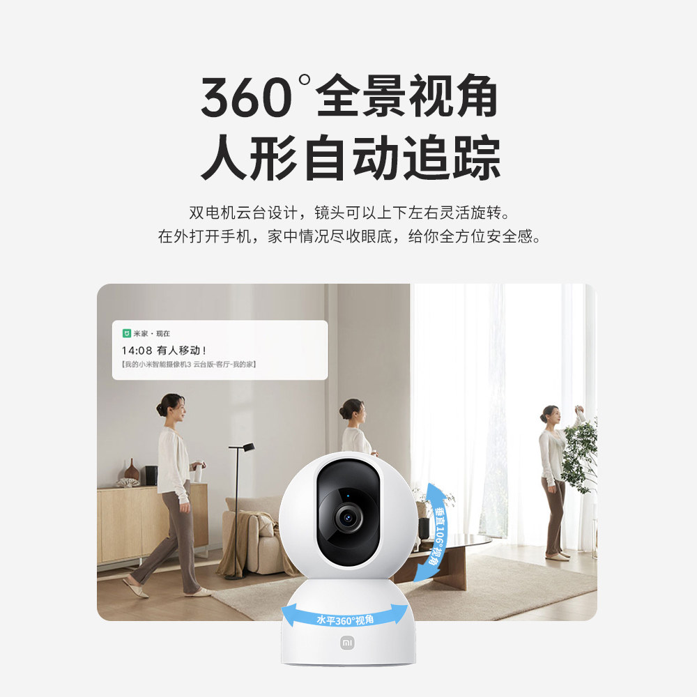 小米智能摄像机2云台版360度全景高清夜视家用无线wifi网络监控摄像头看家宠物远程监控器米家摄影头摄像机W
