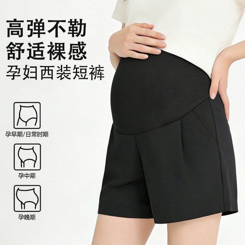 孕妇短裤夏季外穿阔腿西装裤薄款打底裤宽松休闲五分裤子托腹裤装