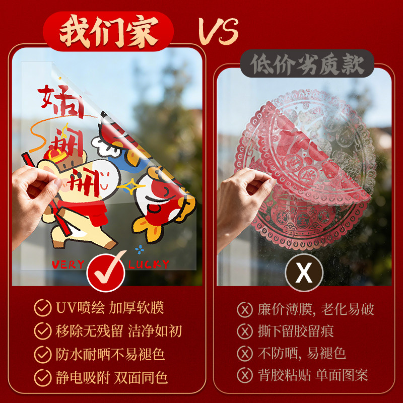 2026新年装饰品静电窗花马年春节新款福字窗贴过年窗户玻璃门贴纸