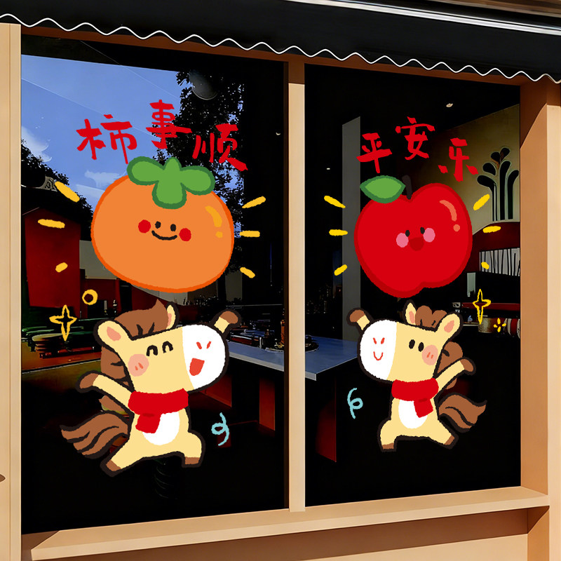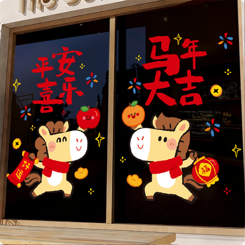 2026新年窗花马年装饰新款玻璃门贴纸静电橱窗贴春节氛围布置贴画