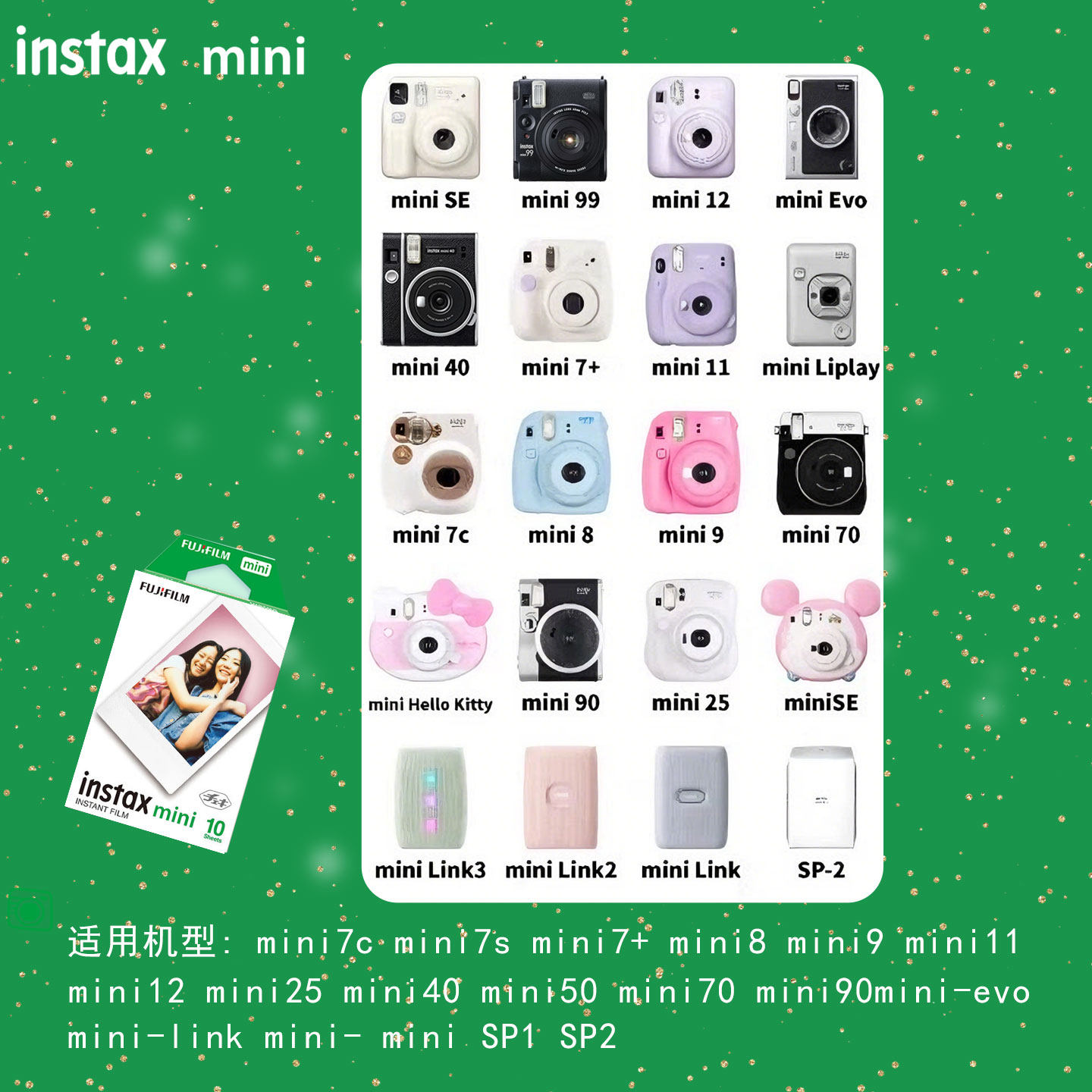 富士拍立得三寸白边相纸使用mini7+7c/8/9/11/12/25/90/40/se相机