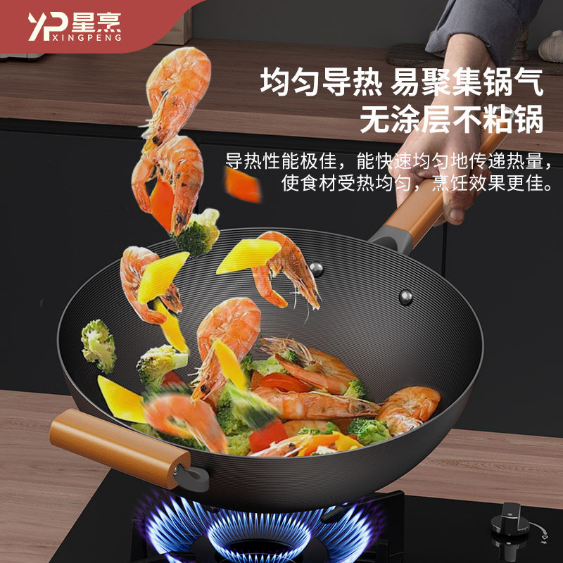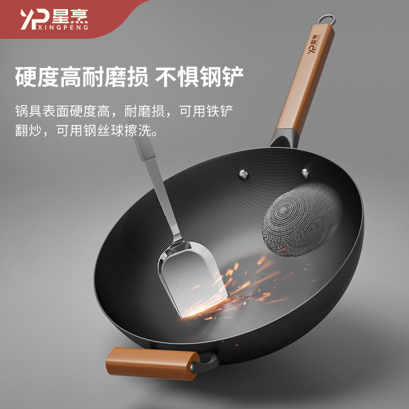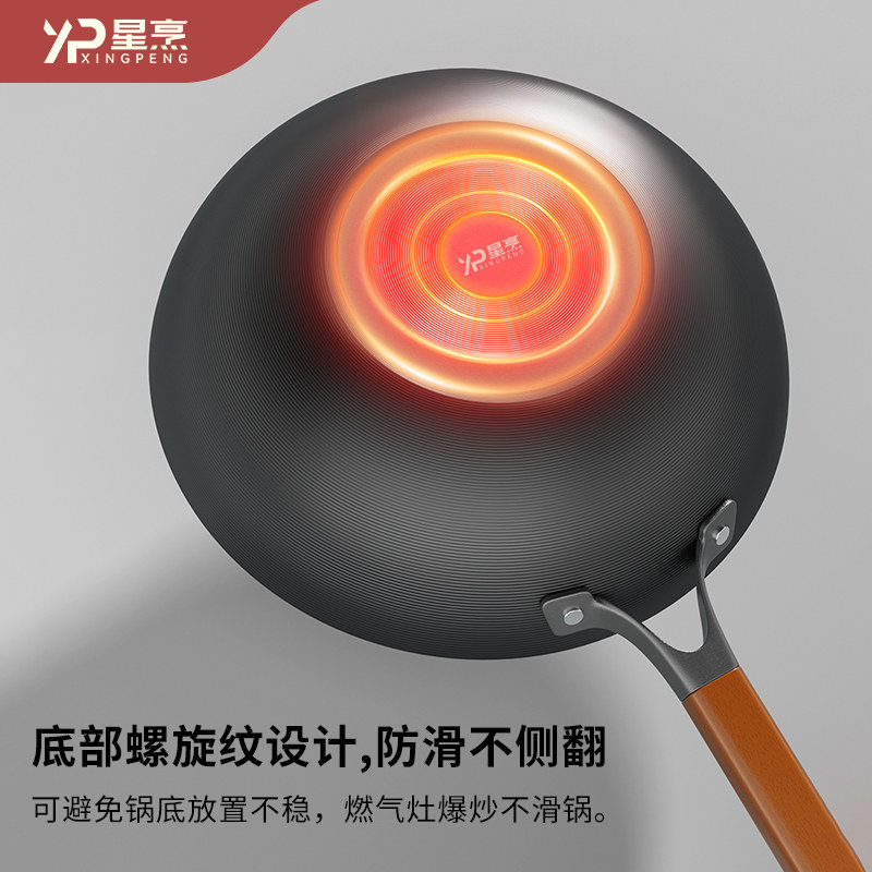 XP星烹 铁锅炒菜锅家用无涂层氮化窒化精铁锅炒锅不粘锅炉灶通用