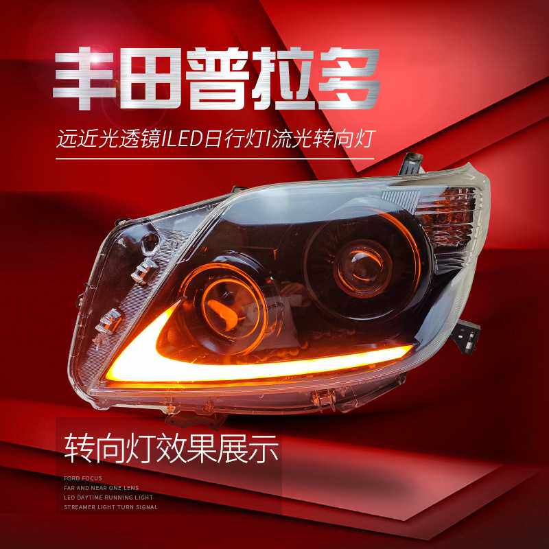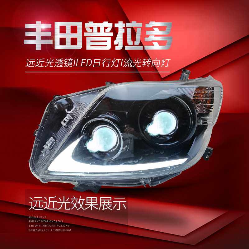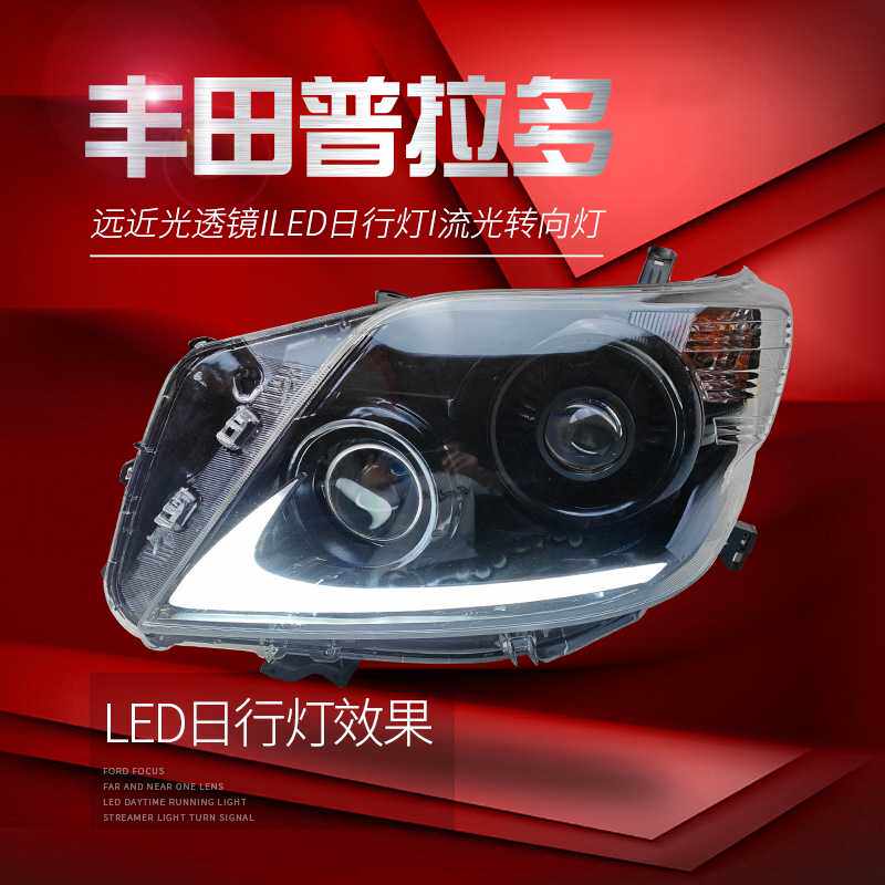 适用于10-13款丰田新霸道大灯总成改装LED日行灯流水转向灯双透镜