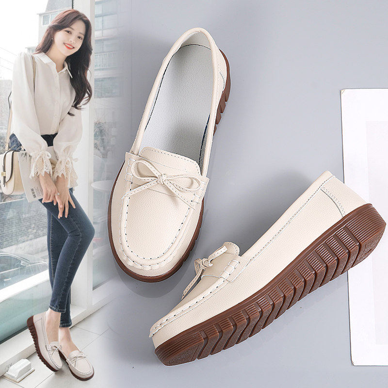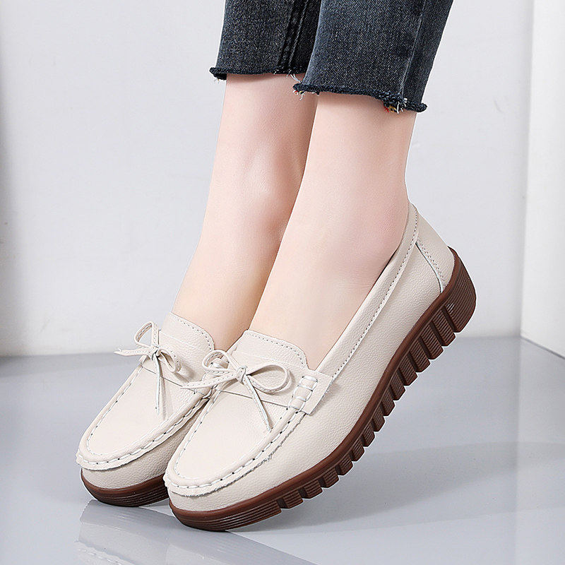 欧伦啄木鸟真皮妈妈鞋春秋季超软底轻便女士皮鞋中老年女鞋一脚蹬