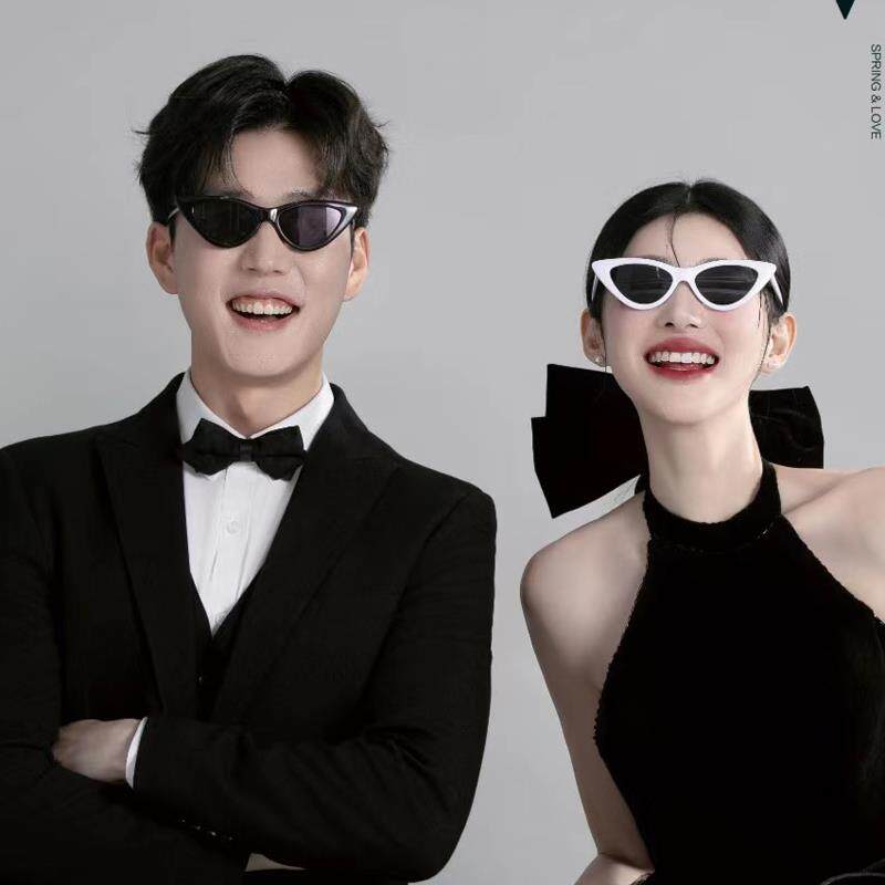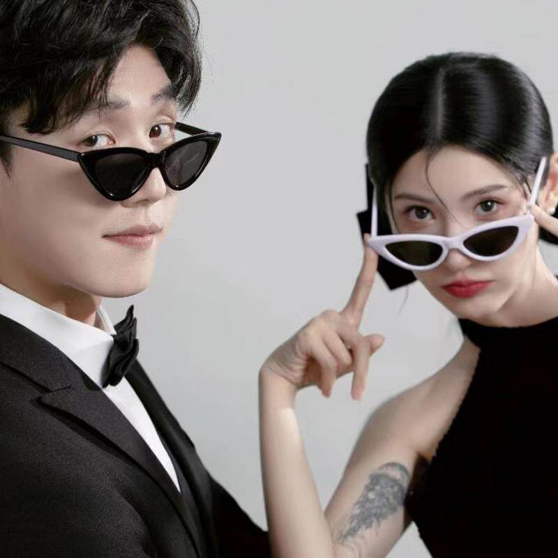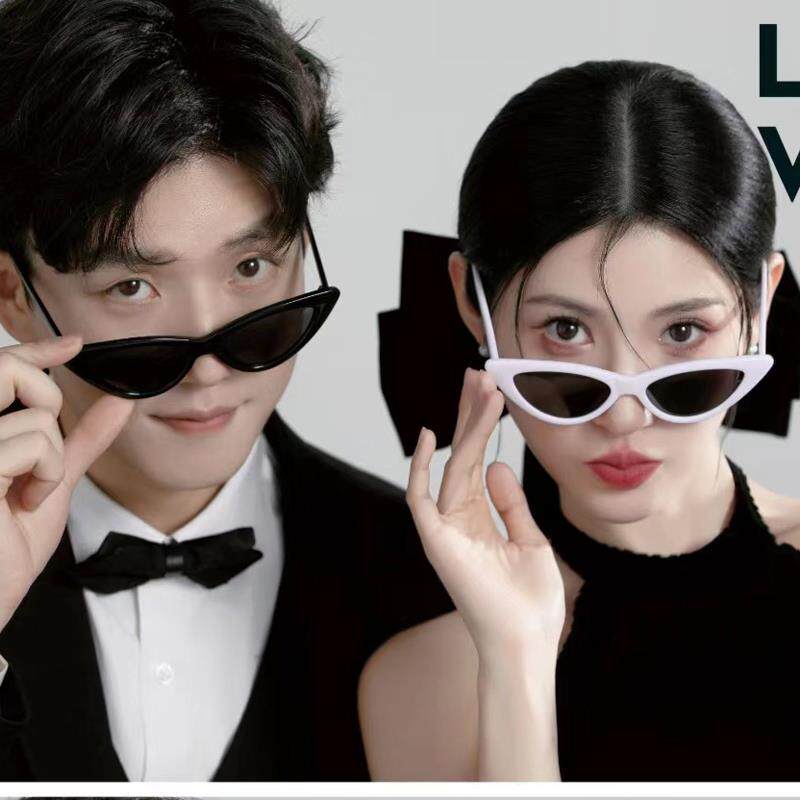 情侣写真个性拍照墨镜婚纱摄影道具黑色主题三角猫眼眼镜造型装饰
