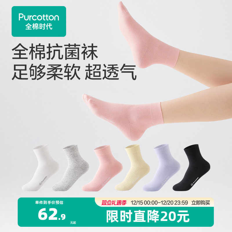 全棉时代袜子男女运动袜抗菌吸汗棉抗菌吸汗运动袜精梳棉透气长袜