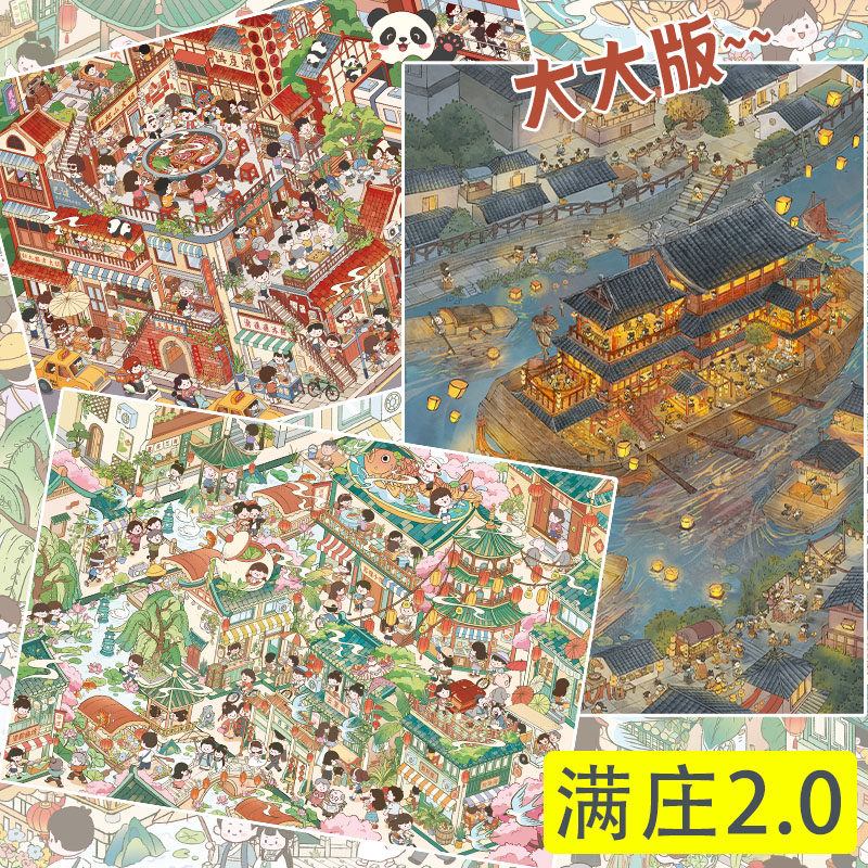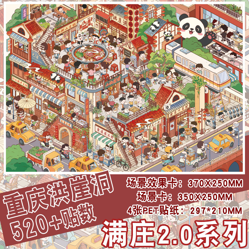 上元夜游记造景贴纸满庄2.0系列超大版高难度微缩场景3D立体小屋贴画手帐手工diy玩具女孩打发时间新年礼物