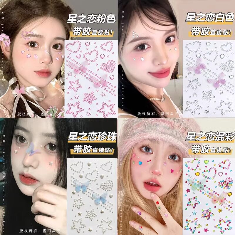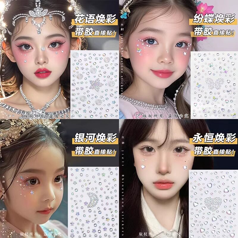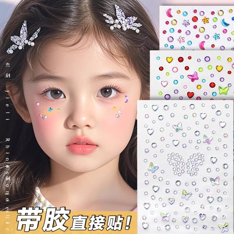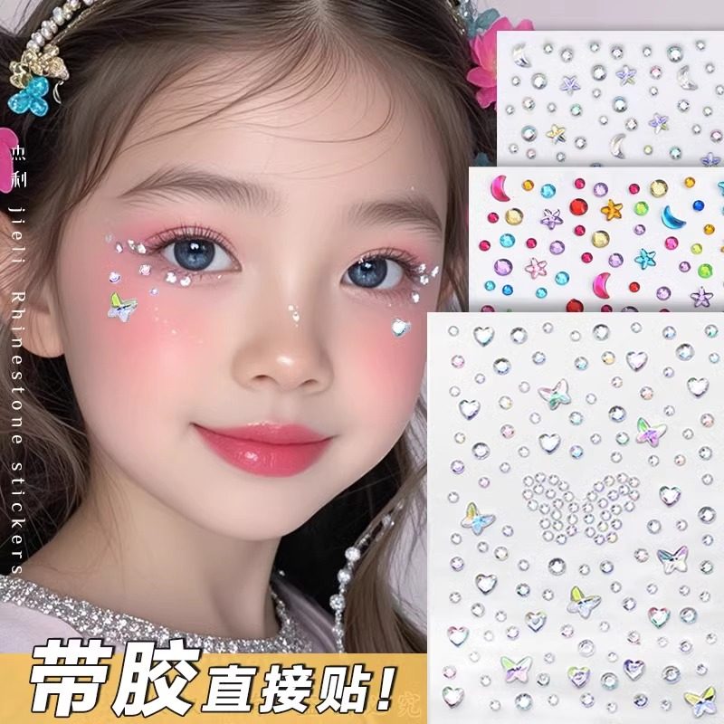儿童脸部化妆装饰自粘钻石贴纸舞台闪钻眼角贴人鱼蝴蝶公主新娘饰品星星月亮钻贴脸背胶街舞演唱会妆容神器