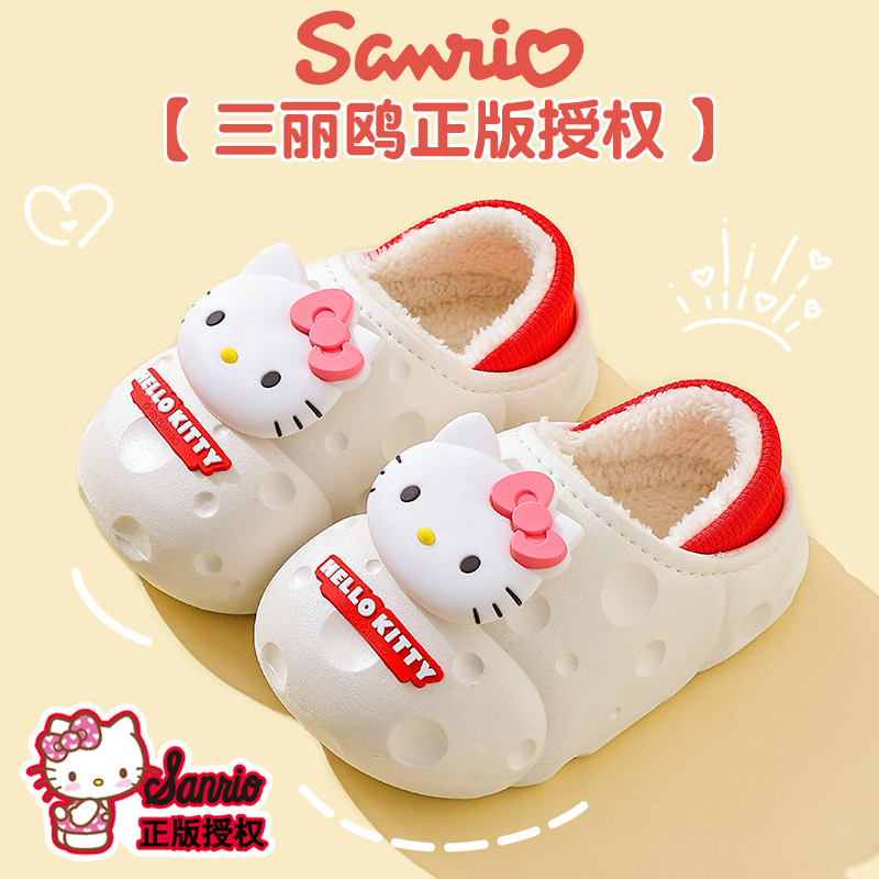三丽鸥儿童棉拖鞋包跟女童冬季防水防滑室内亲子宝宝棉鞋库洛米