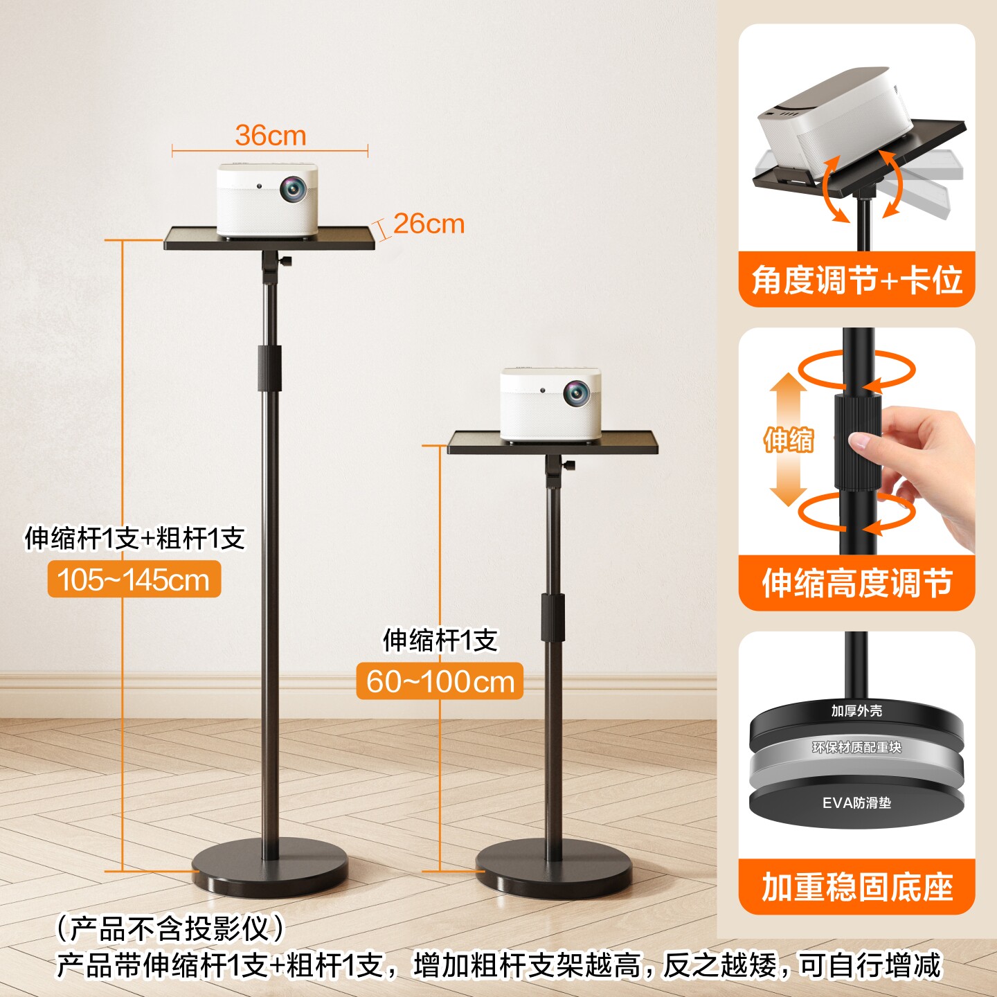 伸缩升降 便携移动免打孔 底座稳固防摔