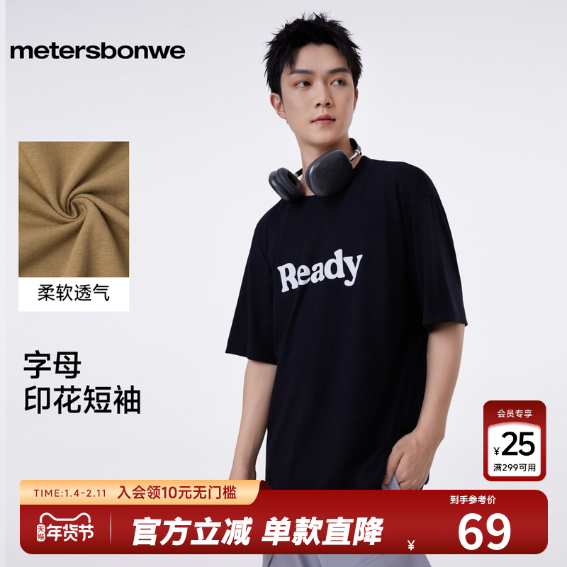 美特斯邦威男士短袖t恤2025夏季新款潮流休闲字母印花透气上衣