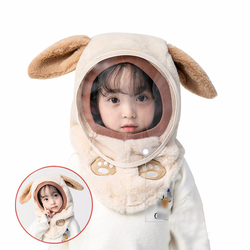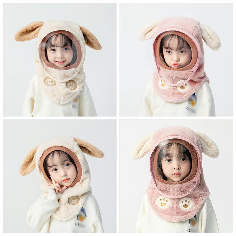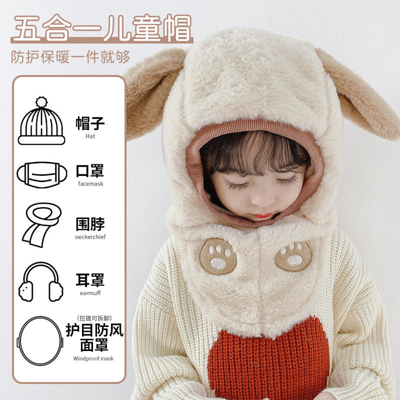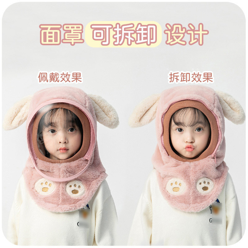宝宝帽子冬骑行保暖毛绒帽男女童防护面罩儿童围巾手套一体帽防风
