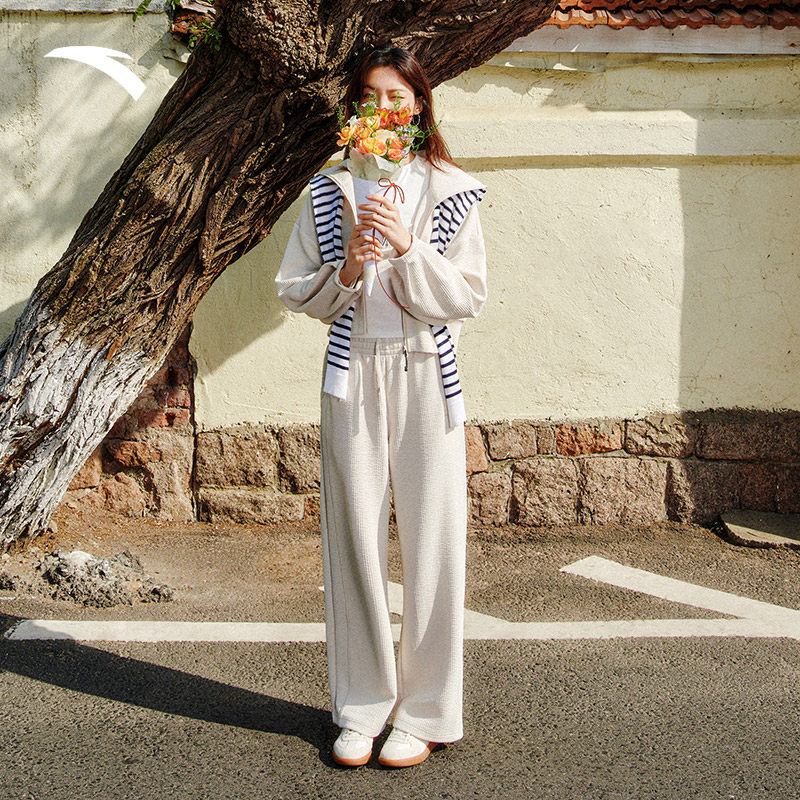 安踏遛弯套装 | 女款2025秋季时尚休闲保暖防风针织垂感松弛套装