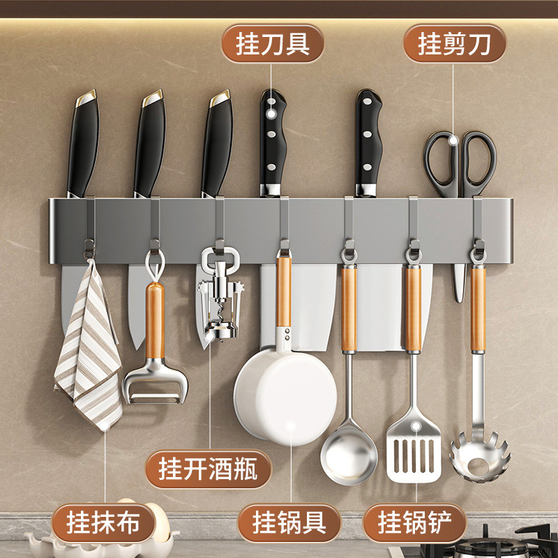 厨房刀架壁挂免打孔收纳架多功能菜刀置物架带挂钩刀座刀具挂架子