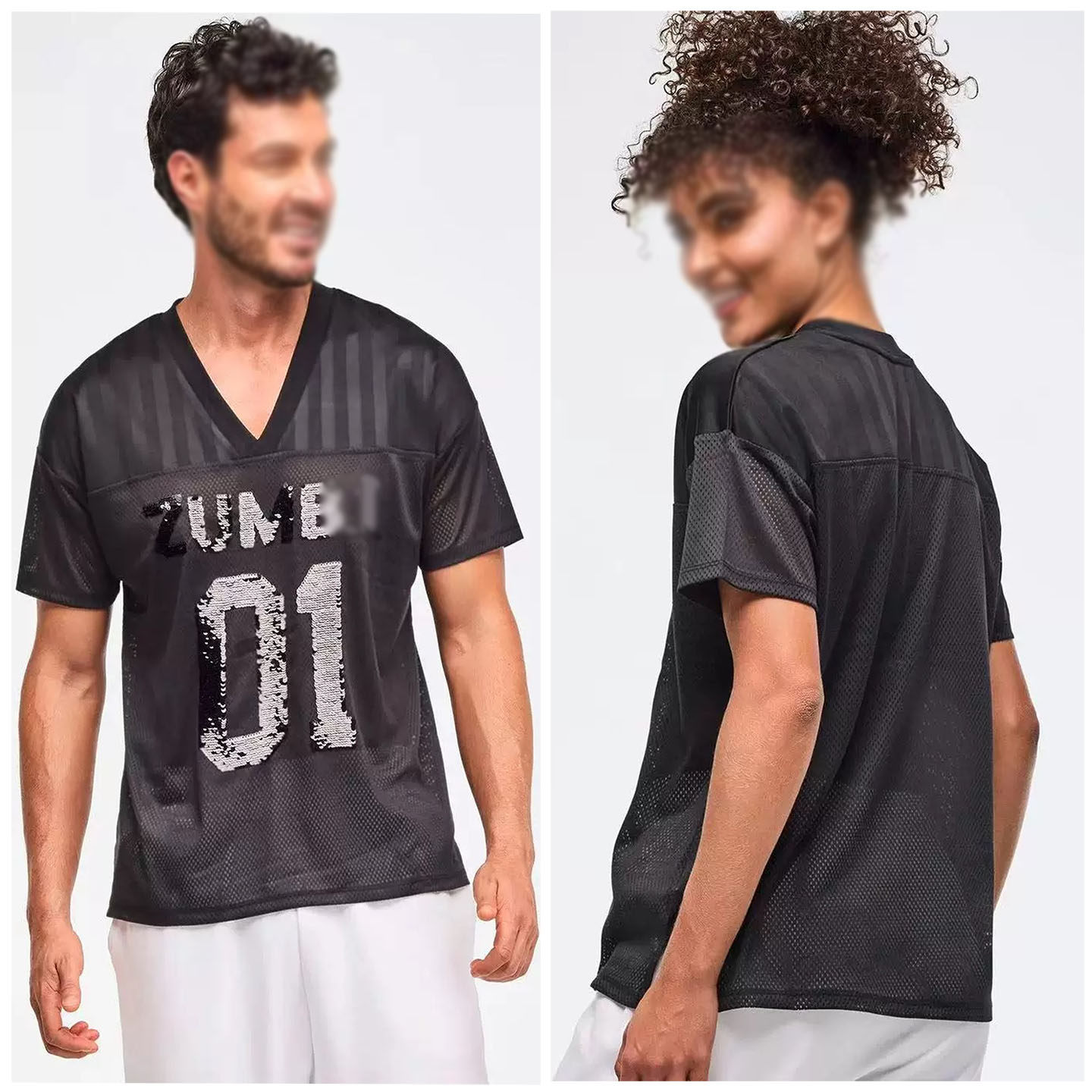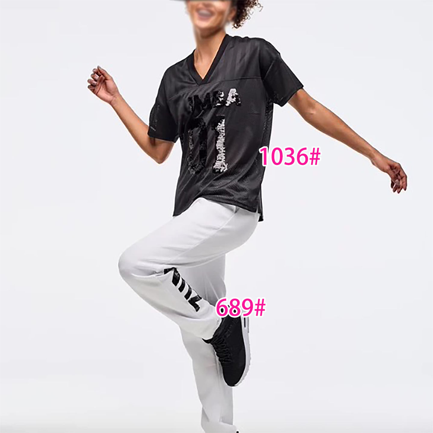 ZW特价舞蹈服健身运动宽松大码短袖男装女装t恤速干透气 双色亮片