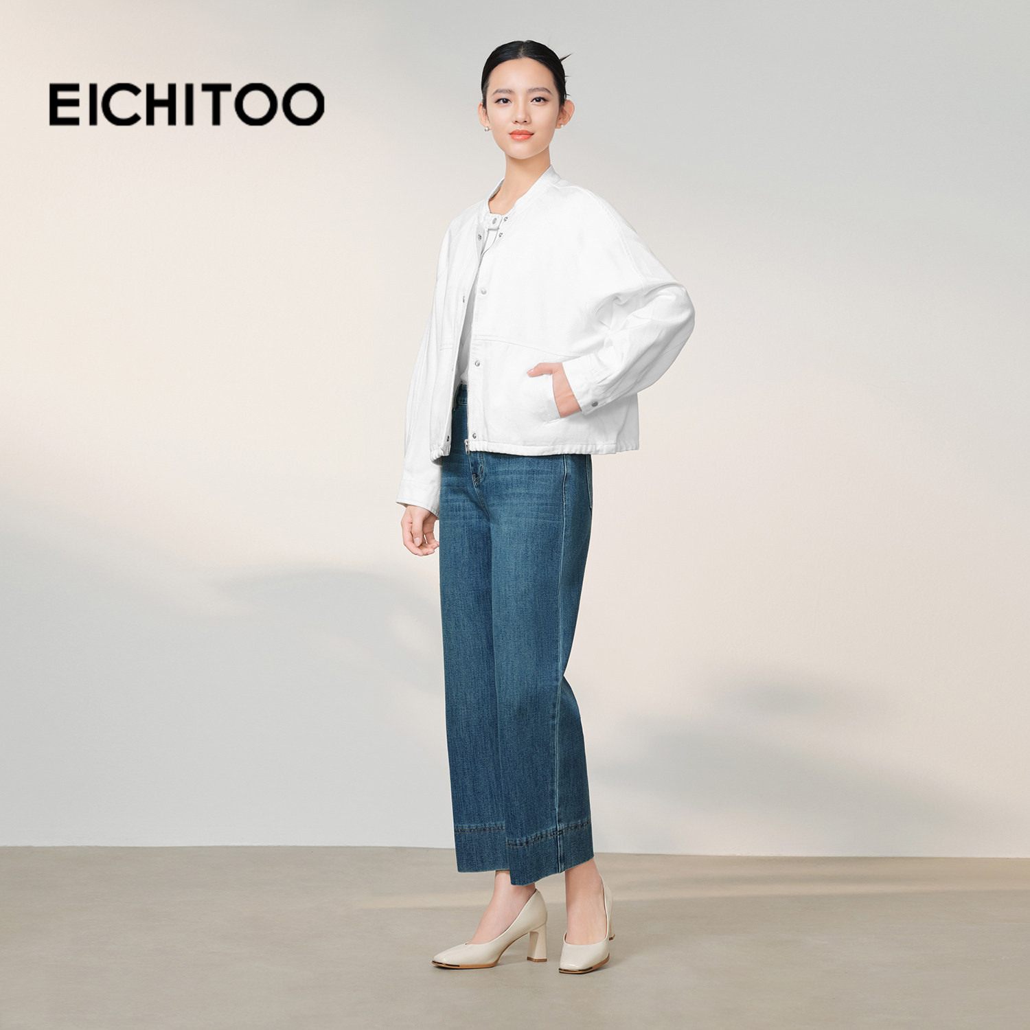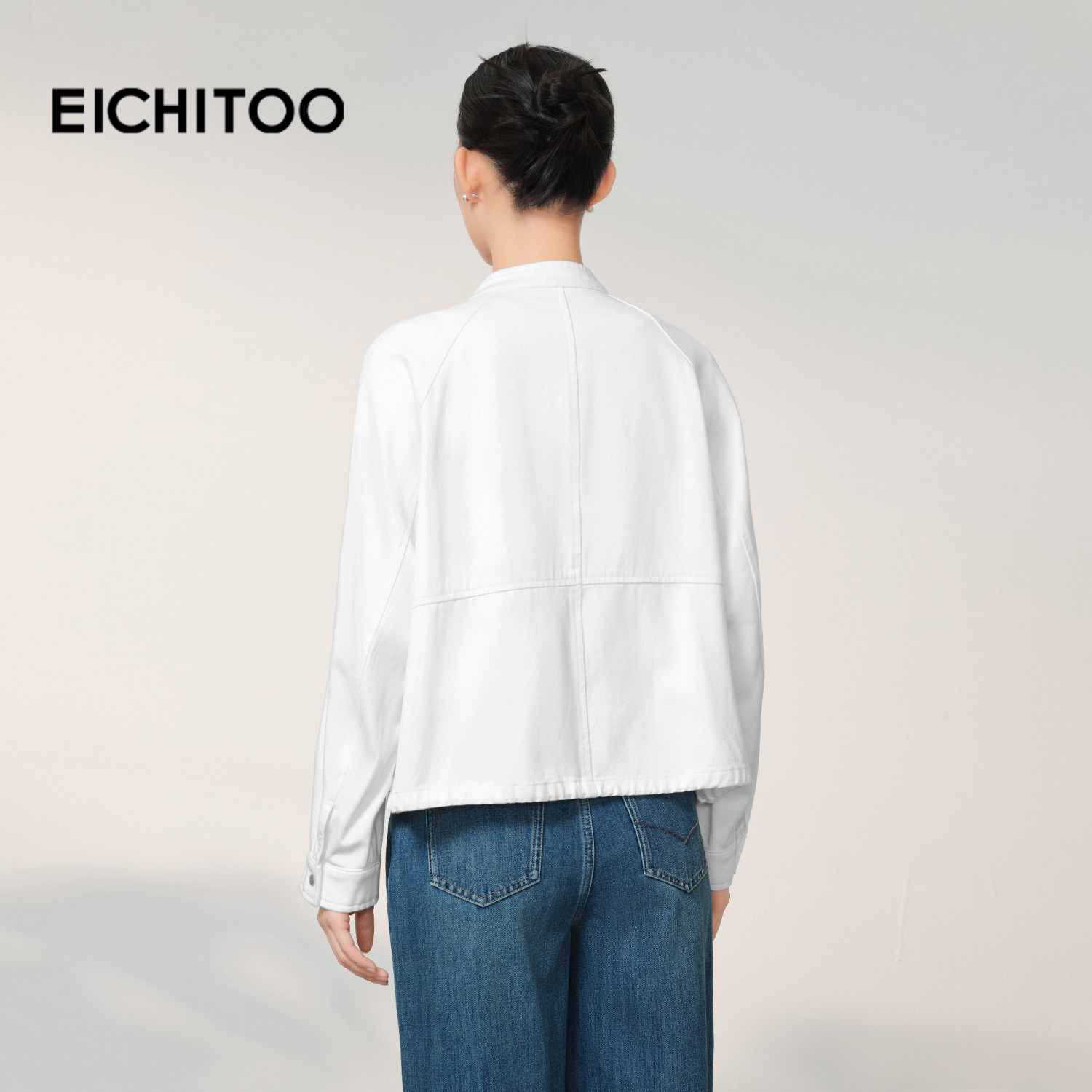 爱居兔白色立领质感短外套女2026年春季新款简约时尚宽松夹克上衣