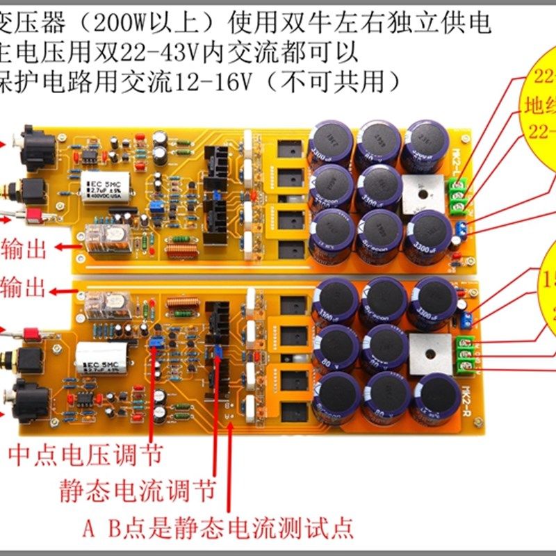 MK2发烧级HiFi功放板 平衡输入 大功率家用成品板 可调纯甲类A类