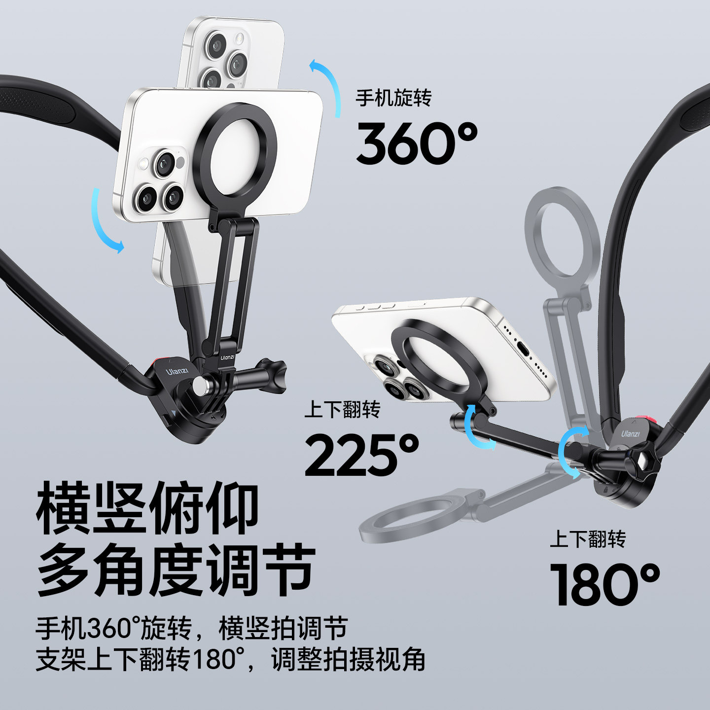 Ulanzi优篮子 MG14挂脖手机磁吸支架第一人称视角拍摄设备运动相机胸前固定胸挂脖子式穿戴防抖直播Vlog骑行