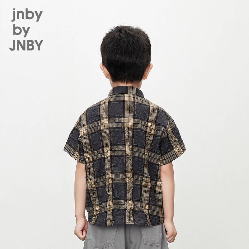 江南布衣童装短袖衬衫外套格纹褶皱休闲可爱夏男童儿童jnbybyjnby